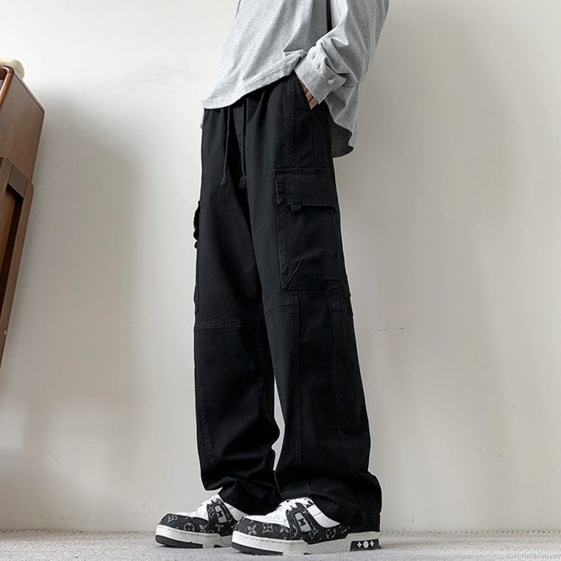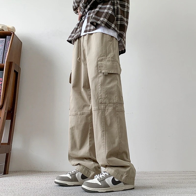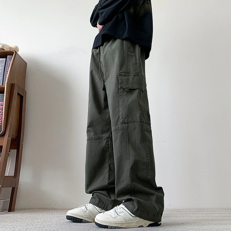 アメリカンワークウェアスタイルのメンズカジュアルパンツ 春夏用ゆったりフィット スポーツアウトドア対応 ワイドストレートパンツ