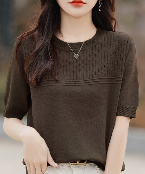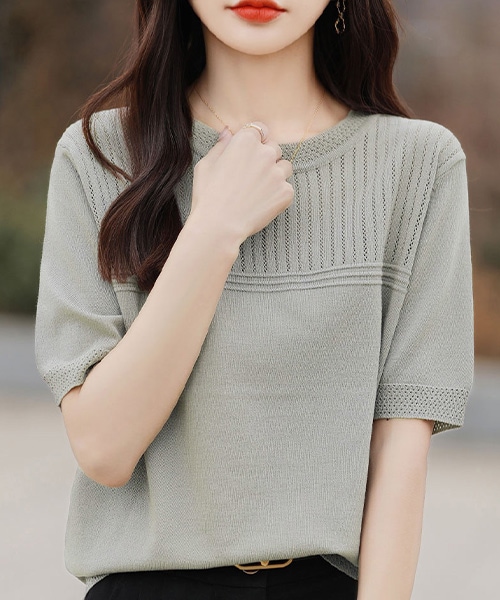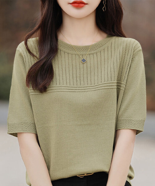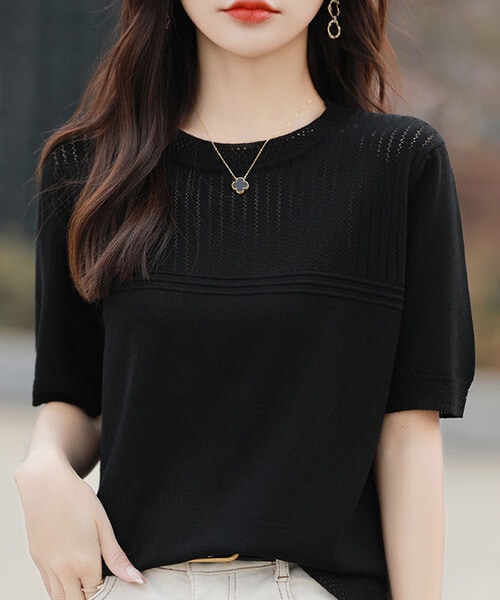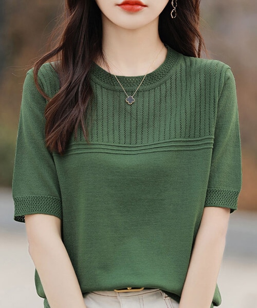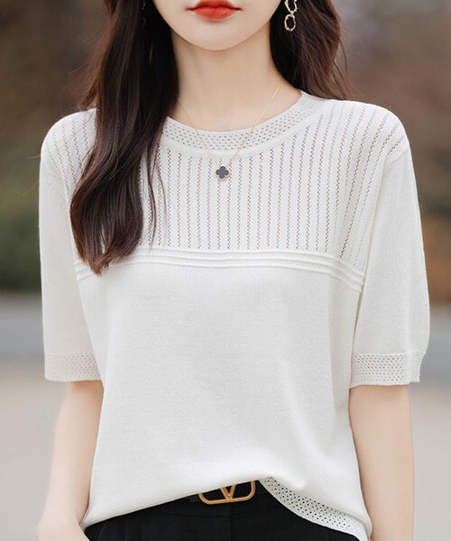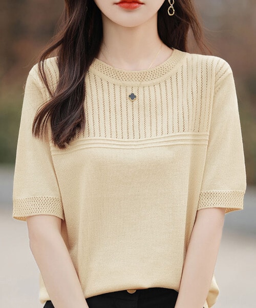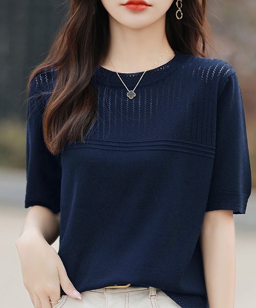 トップス ニット レディース 半袖 夏 春 秋 Uネック 袖あり シンプル 上品 女性 大きめ ゆったり カジュアル サマーニット 無地 20代 30代 40代 50代 yctops50