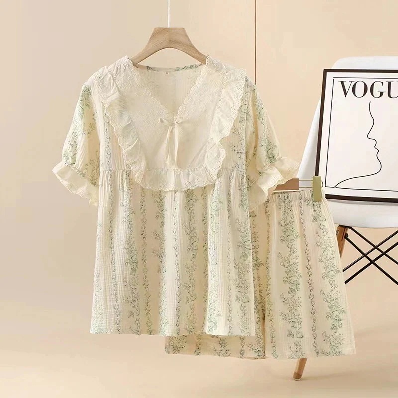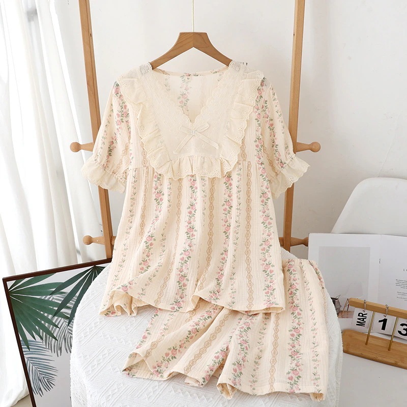 2025 秋 花柄 長袖パジャマ 春夏 綿 薄手 フリル ルームウェア パジャマセットアップ レディース 韓国ファッション
