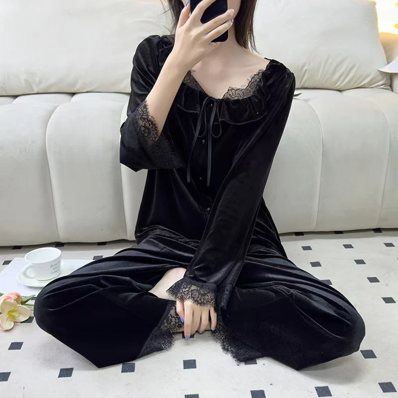 2025 秋冬 パジャマ レトロ きれいめ ルームウェア 新作 おしゃれ 長袖パジャマ 長袖/ロングパンツ セクシー 快適 セットアップ 上下セット レディース 韓国ファッション