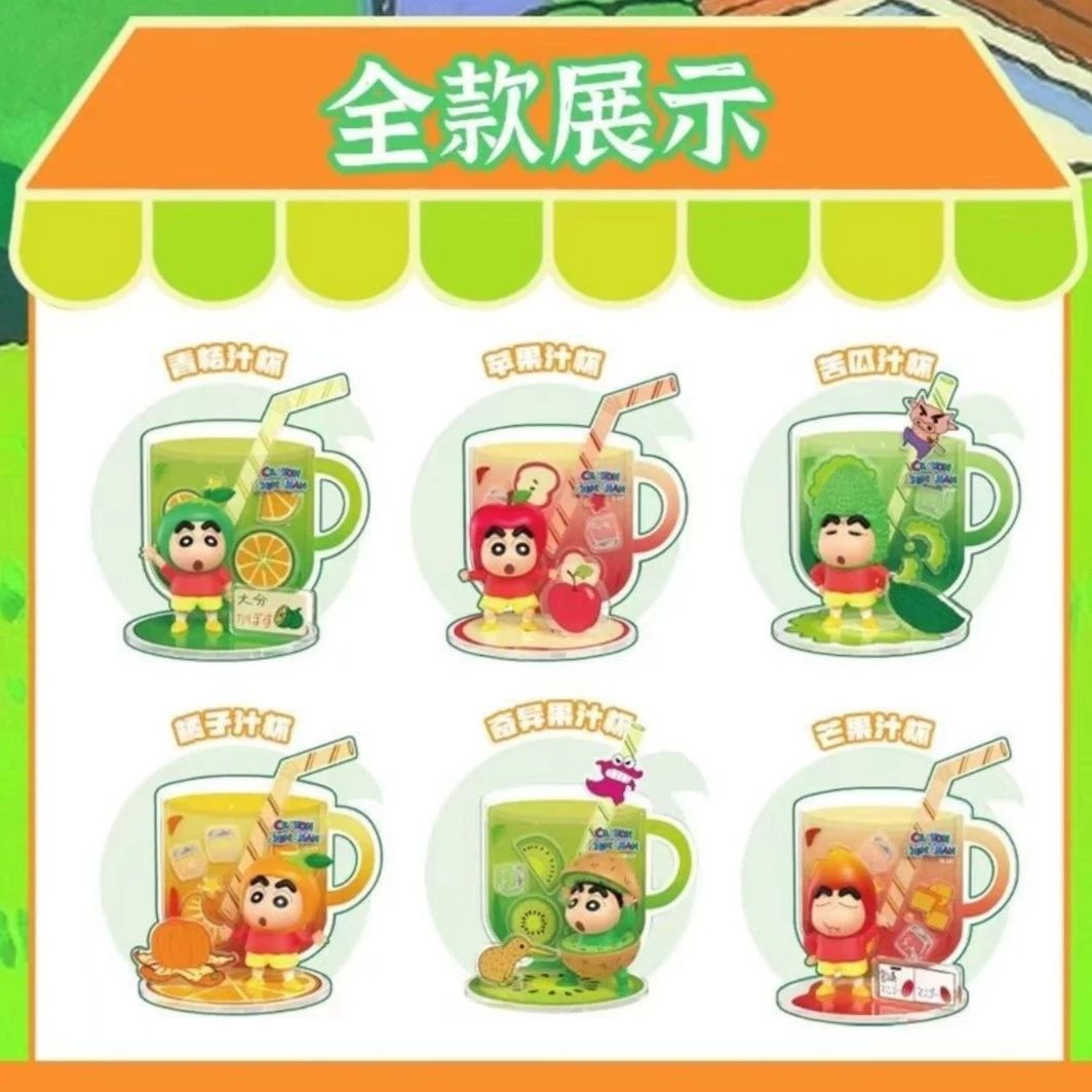 聯宇アニメのクレヨンの小さい新しいカラフルなジュースの杯のシーンの置物のテーブルの装飾のかわいい二次元のブラインドの箱