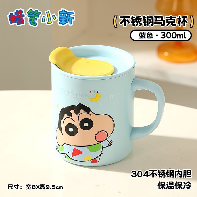 【かわいい目盛り】クレヨンしんちゃん304ステンレスマグカップ蓋付き家庭用牛乳ダイヤルカップ漫画かわいいカッププレゼント