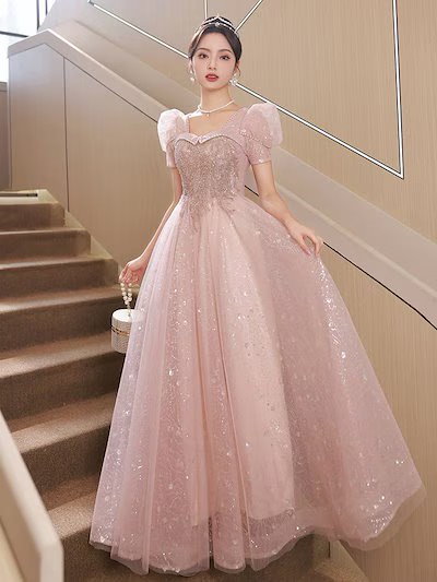 パーティードレス ピンクのイブニングドレス女性 宴会気質パーティードレス 女二次会 演奏会 発表会 披露宴 結婚式 司会
