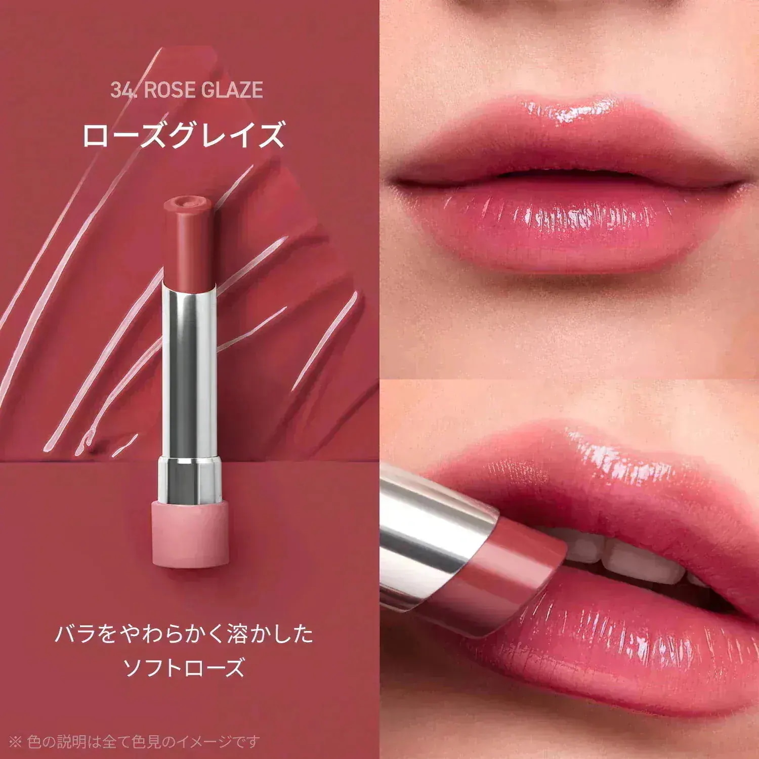 派手な発色ではなく、肌に自然に馴染むカラーで、じんわり色づくツヤ感で魅せる多幸感メイクには持ってこいの商品かなと思いました。
