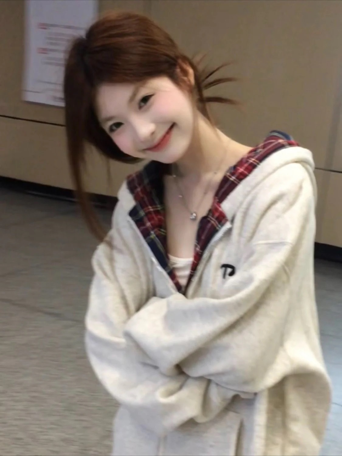 春秋アメリカンチェックオーバーサイズデザイン感トレンドジャケットゆったりラフなカーディガンニッチなフーディー女性用