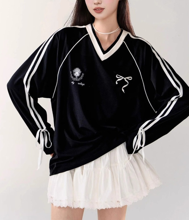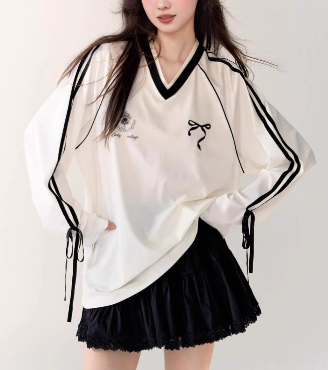 アメリカンスタイル無地プリントストライプVネック秋冬新作ゆったり着回し可能トレンドブランドジャージ長袖保温フーディ女性用