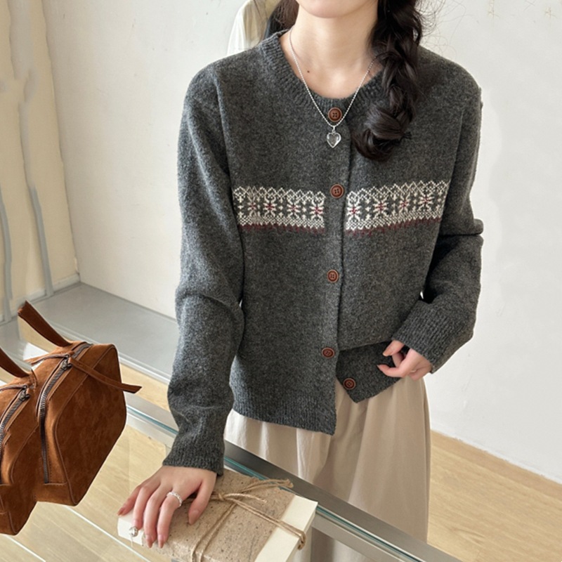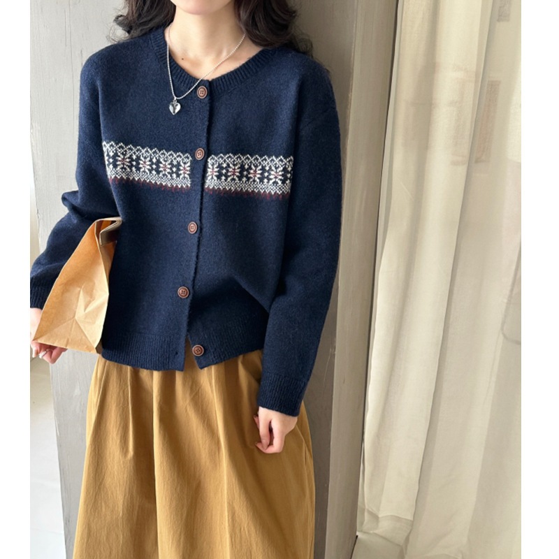 高級感ストライプニットカーディガン レディース 春秋用 丸首 ゆったりカジュアル オーバーサイズ ファッショナブルでおしゃれなトップス