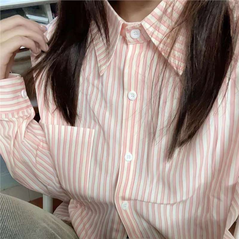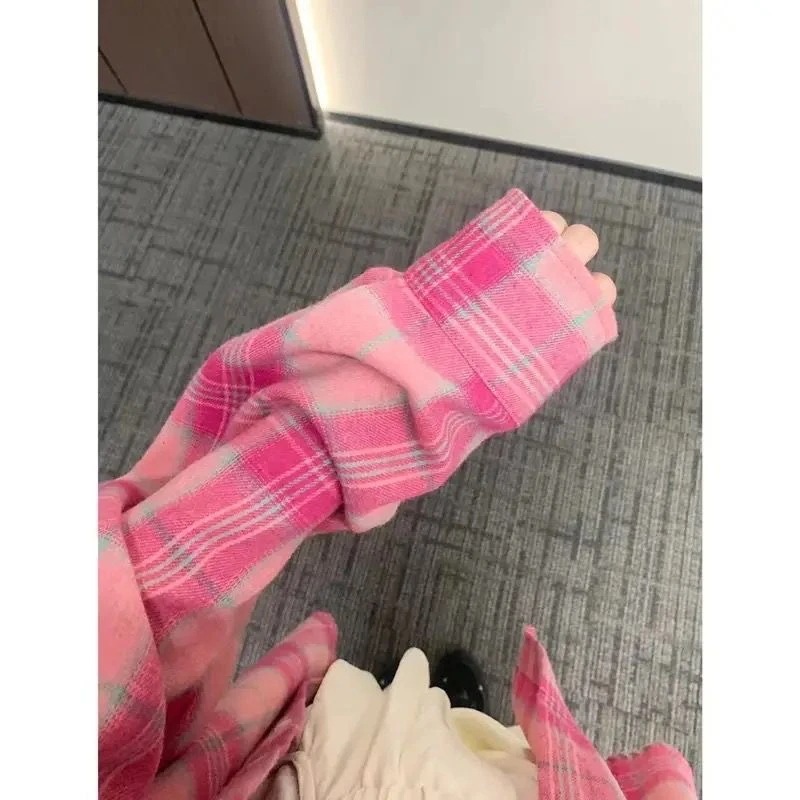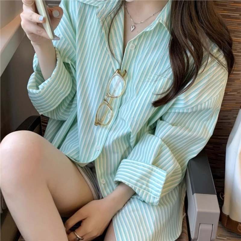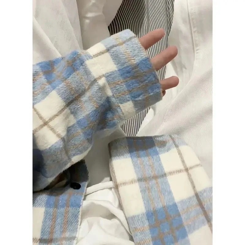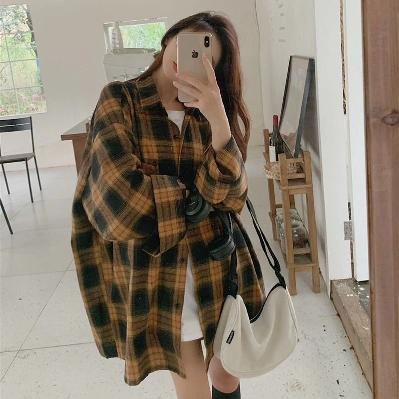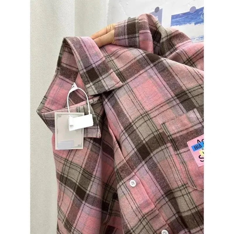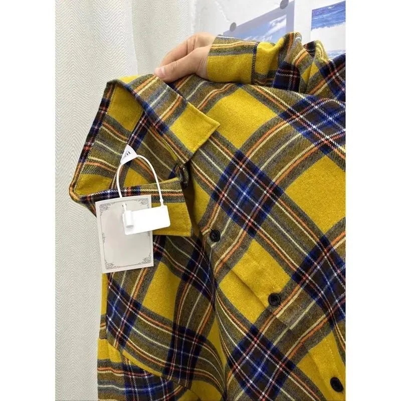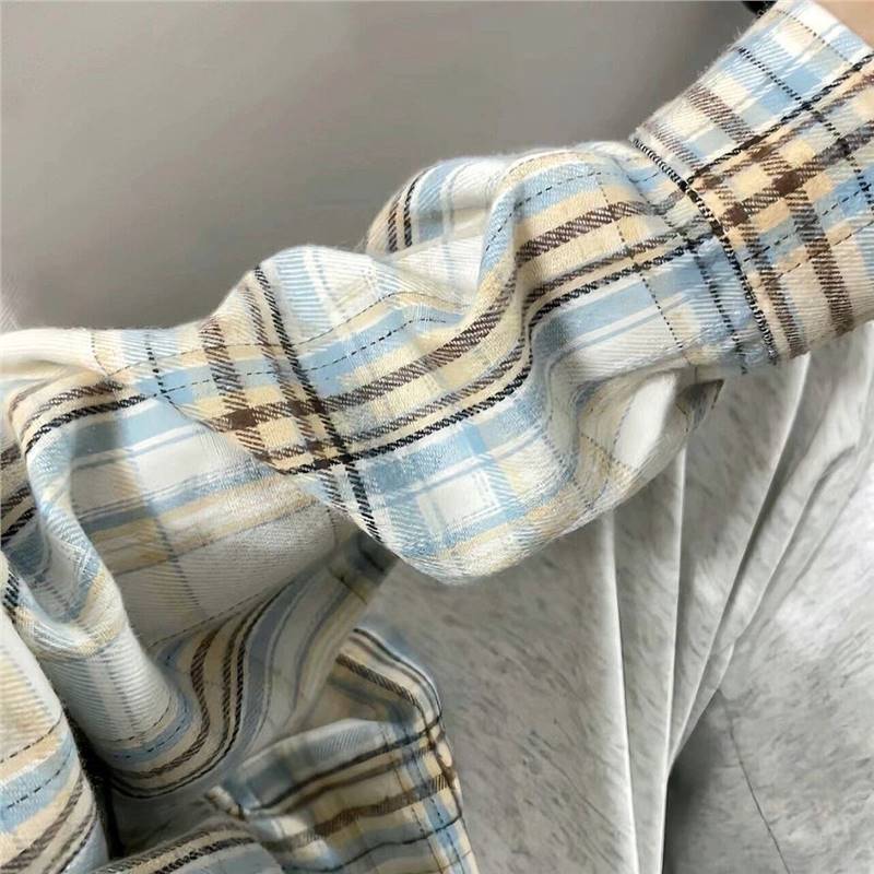 国潮ブランド ブルーチェック長袖シャツ 女性用 春・秋用 ゆったりオーバーサイズ ハラジュク風 カジュアル 合わせやすいシャツ