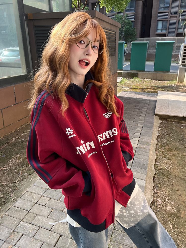 アメリカンハイストリート カラーブロック 3本ストライプ スポーツスタンドカラー スウェットジャケットレディース 春・秋用 ゆったり着回し オープンカーディガン ジャケット トップス