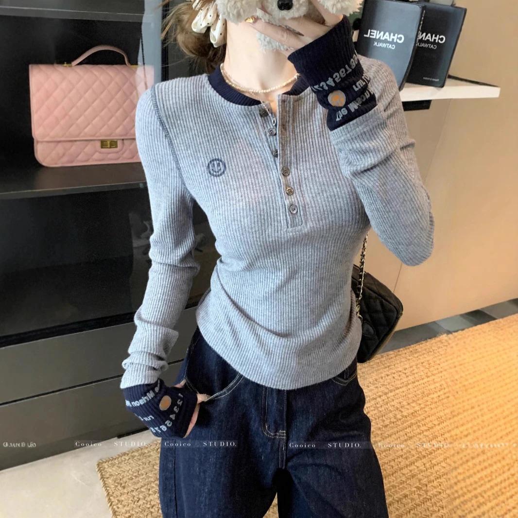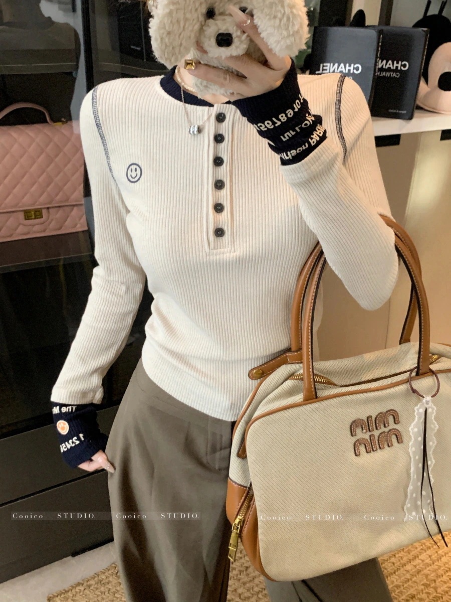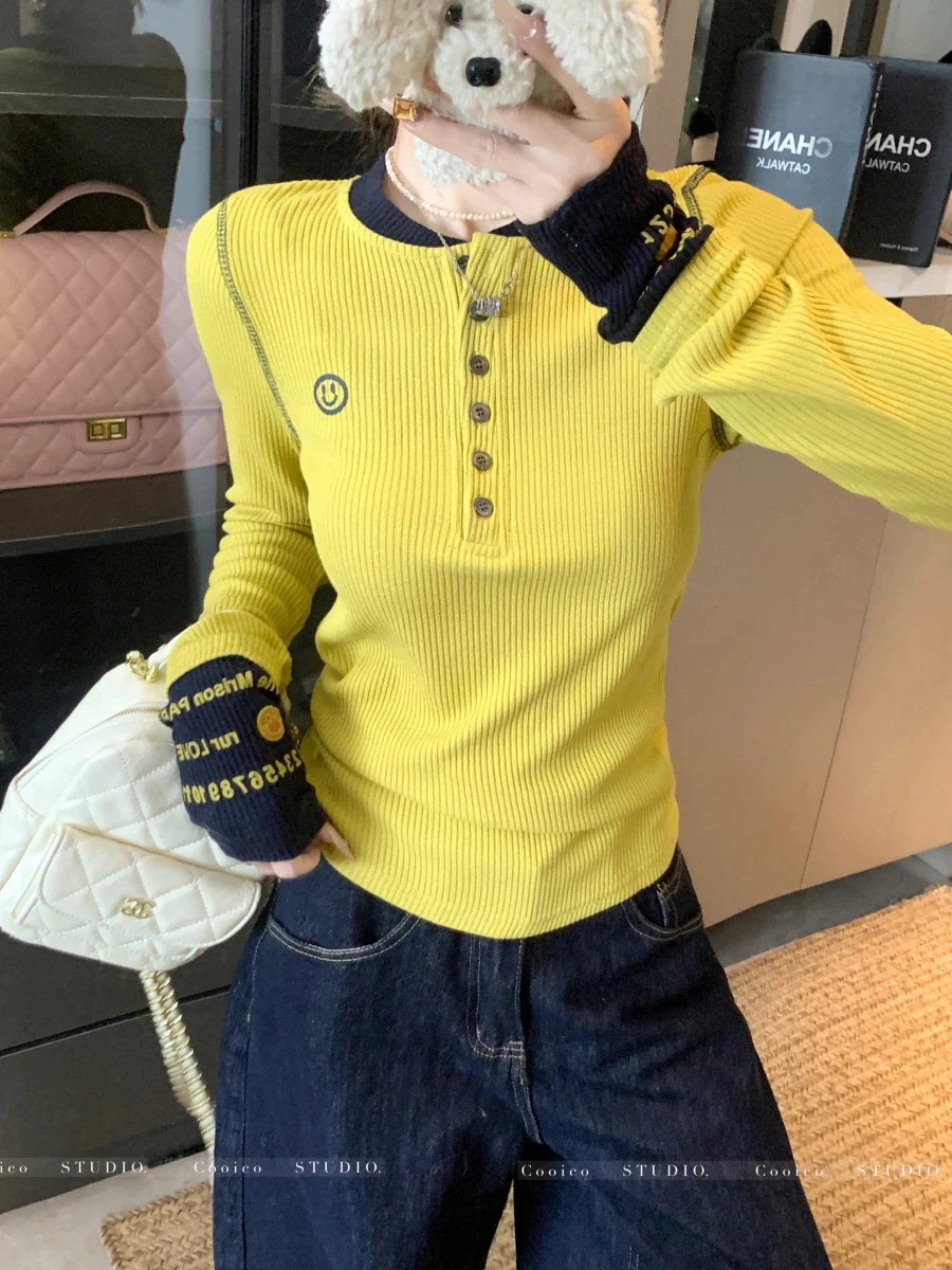 ドーパミンカラーニットトップス女性用秋2025デザイン刺繍インナーベースレイヤードスリムシルエットトップス