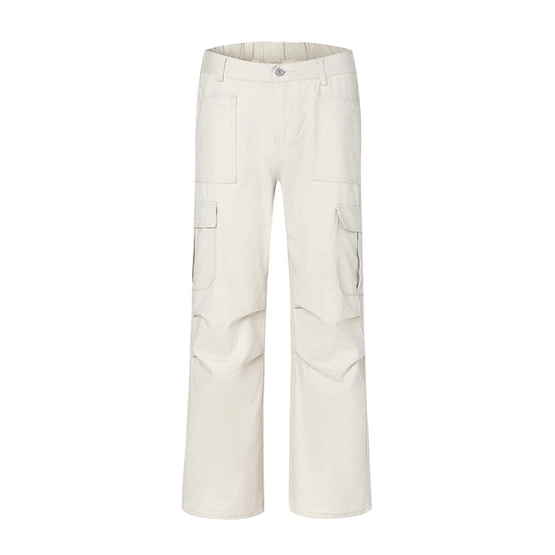 ベージュ系ストリートブランド作業用パンツ 男性用アメリカンハイストリート ゆったりストレートワイドレッグ 傘兵スタイルカジュアルパンツ