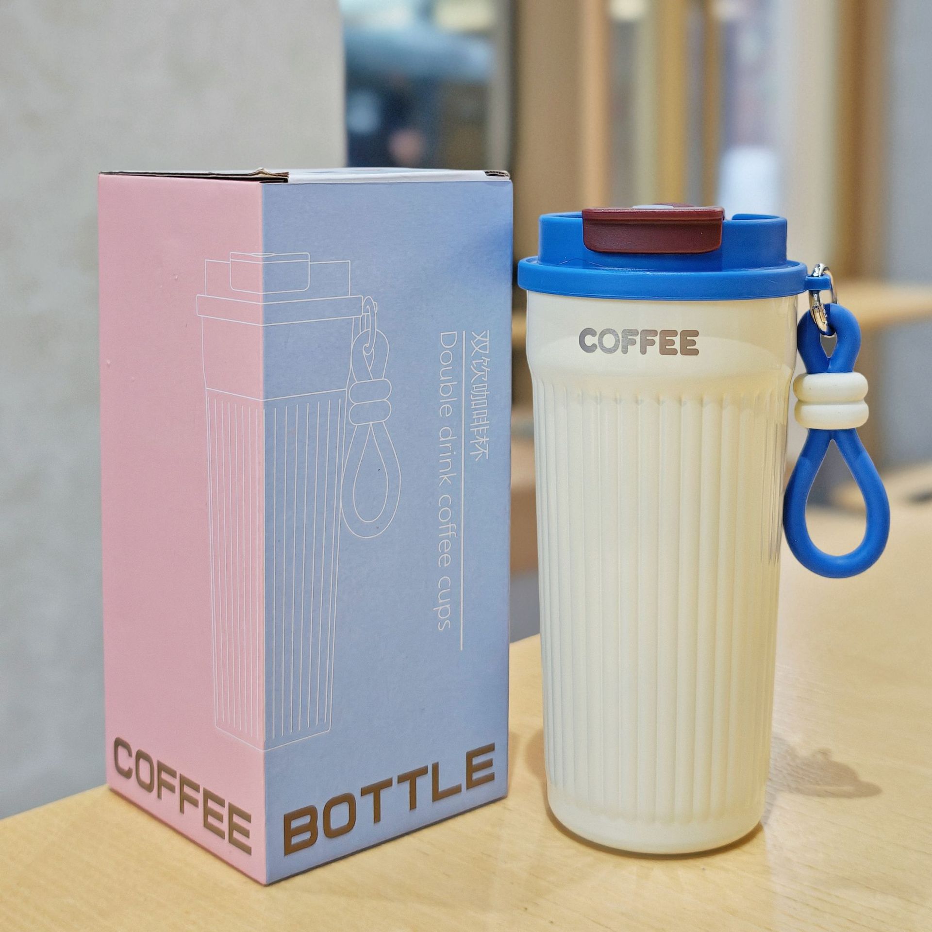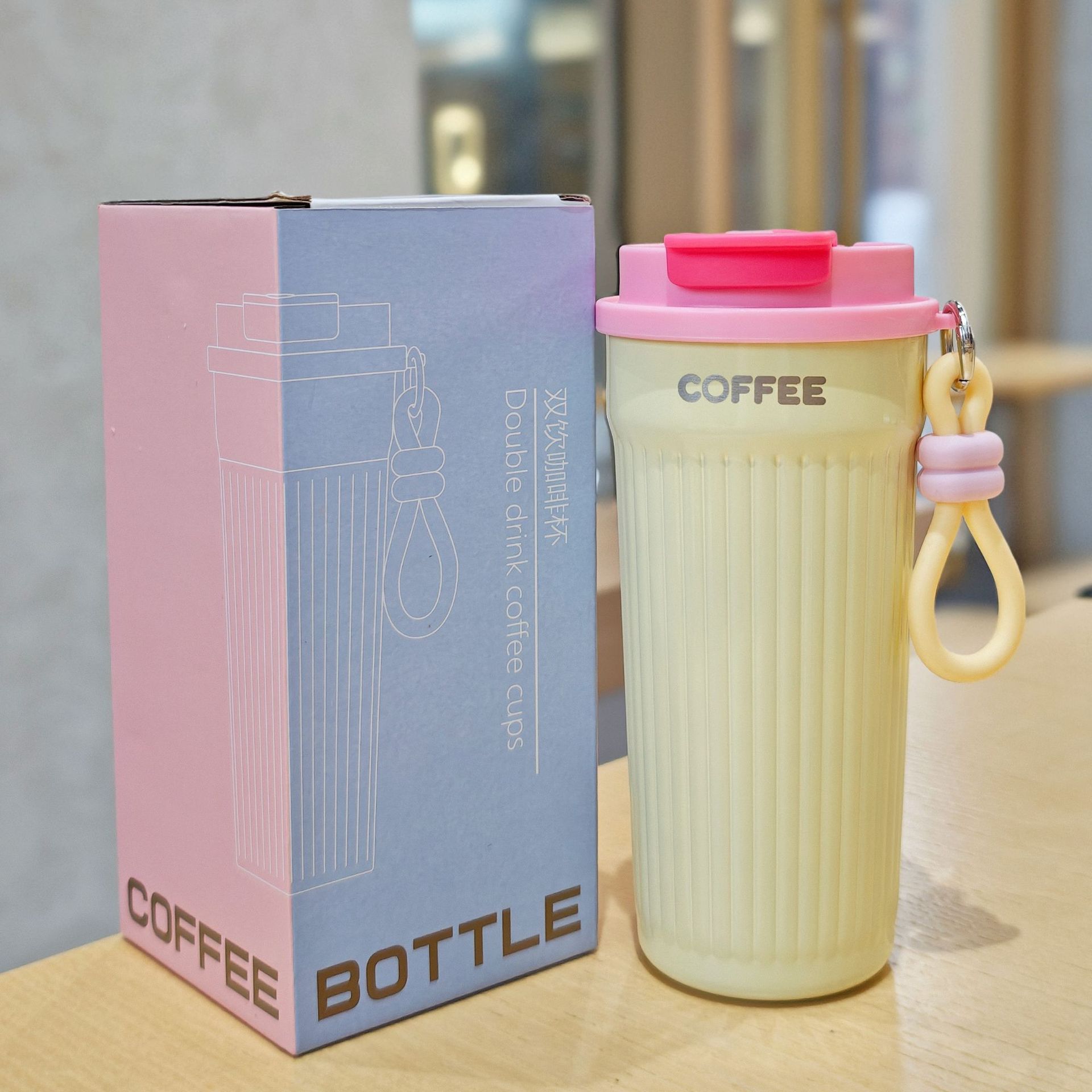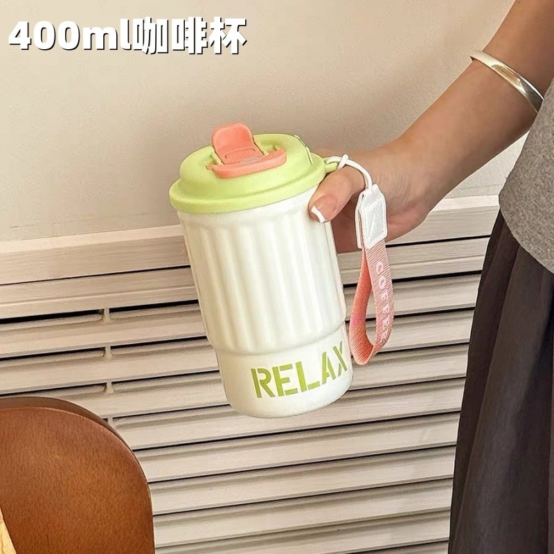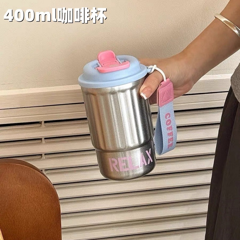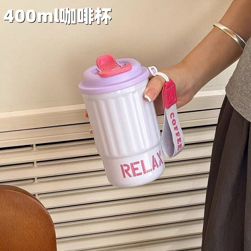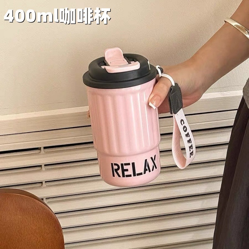シンプルな縦縞のコーヒーカップ携帯用ステンレス真空コップ美しいダブルドリンクカップカップル携帯用カップ