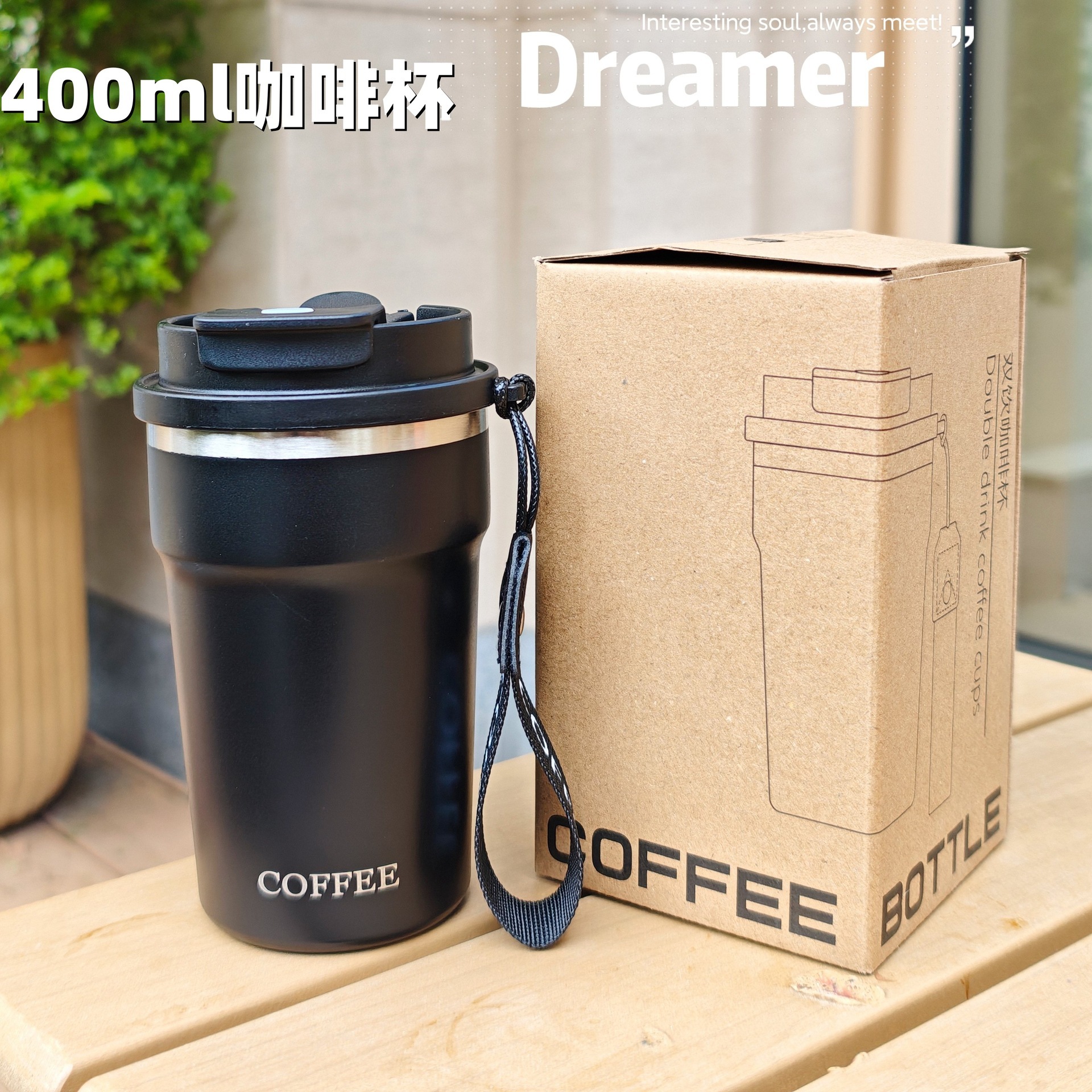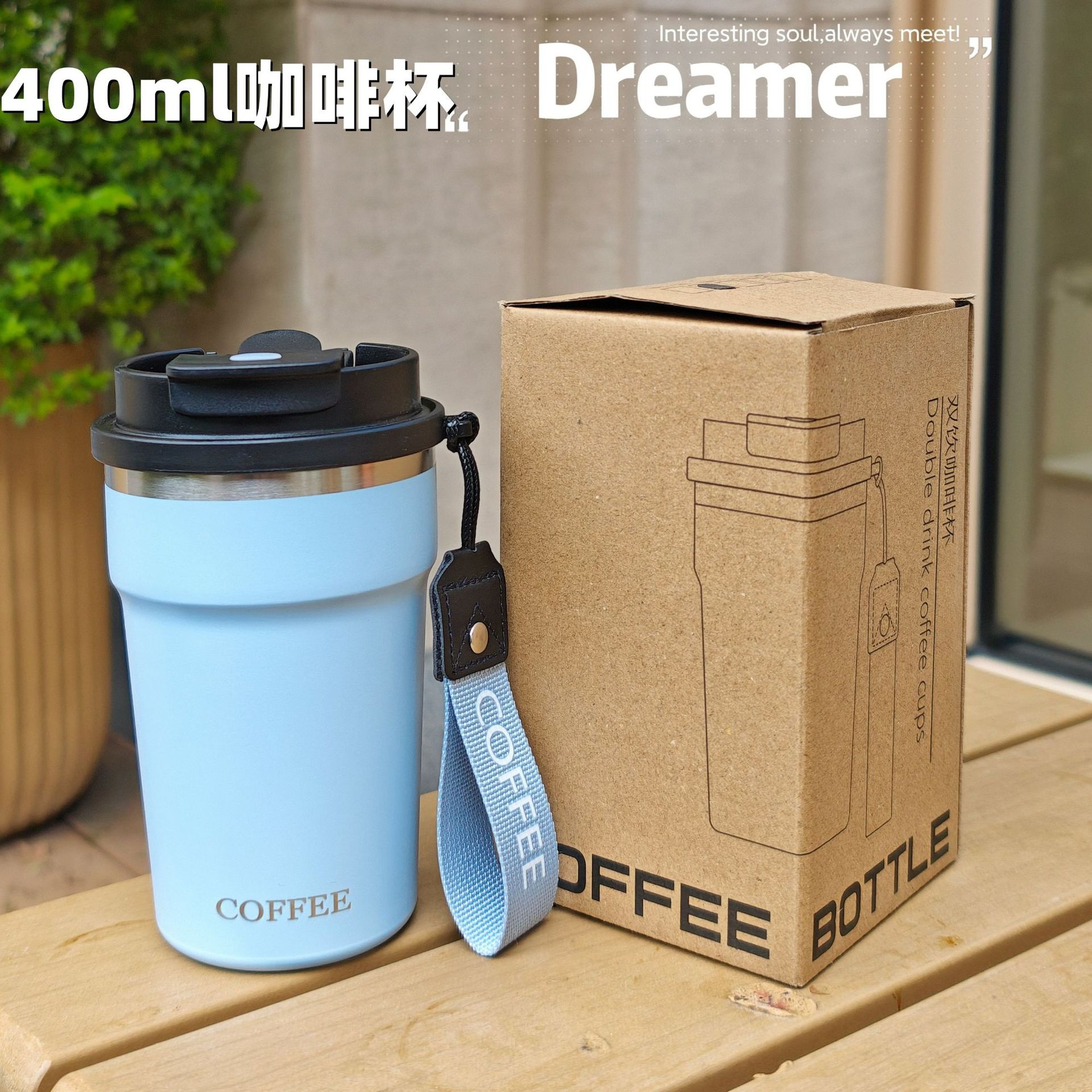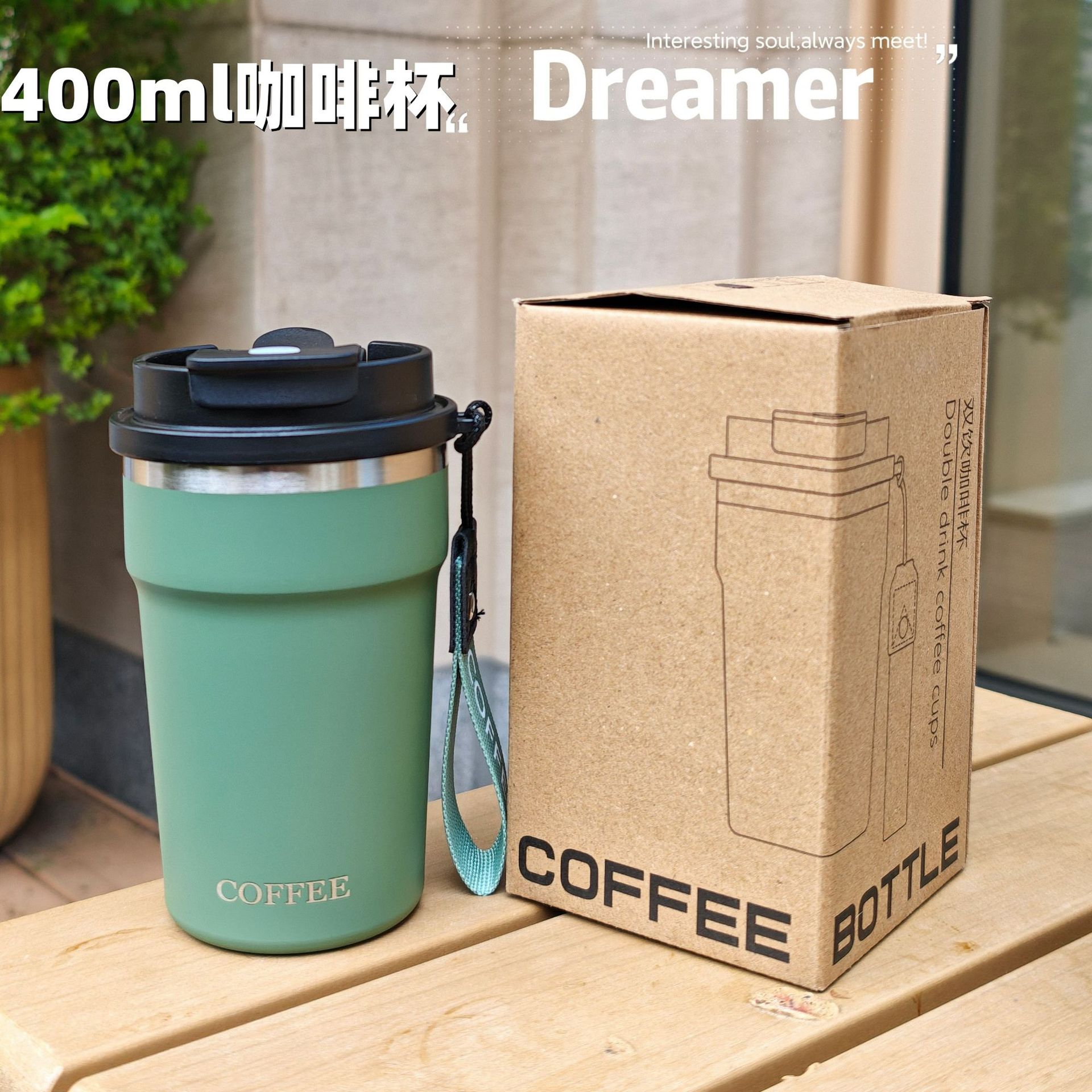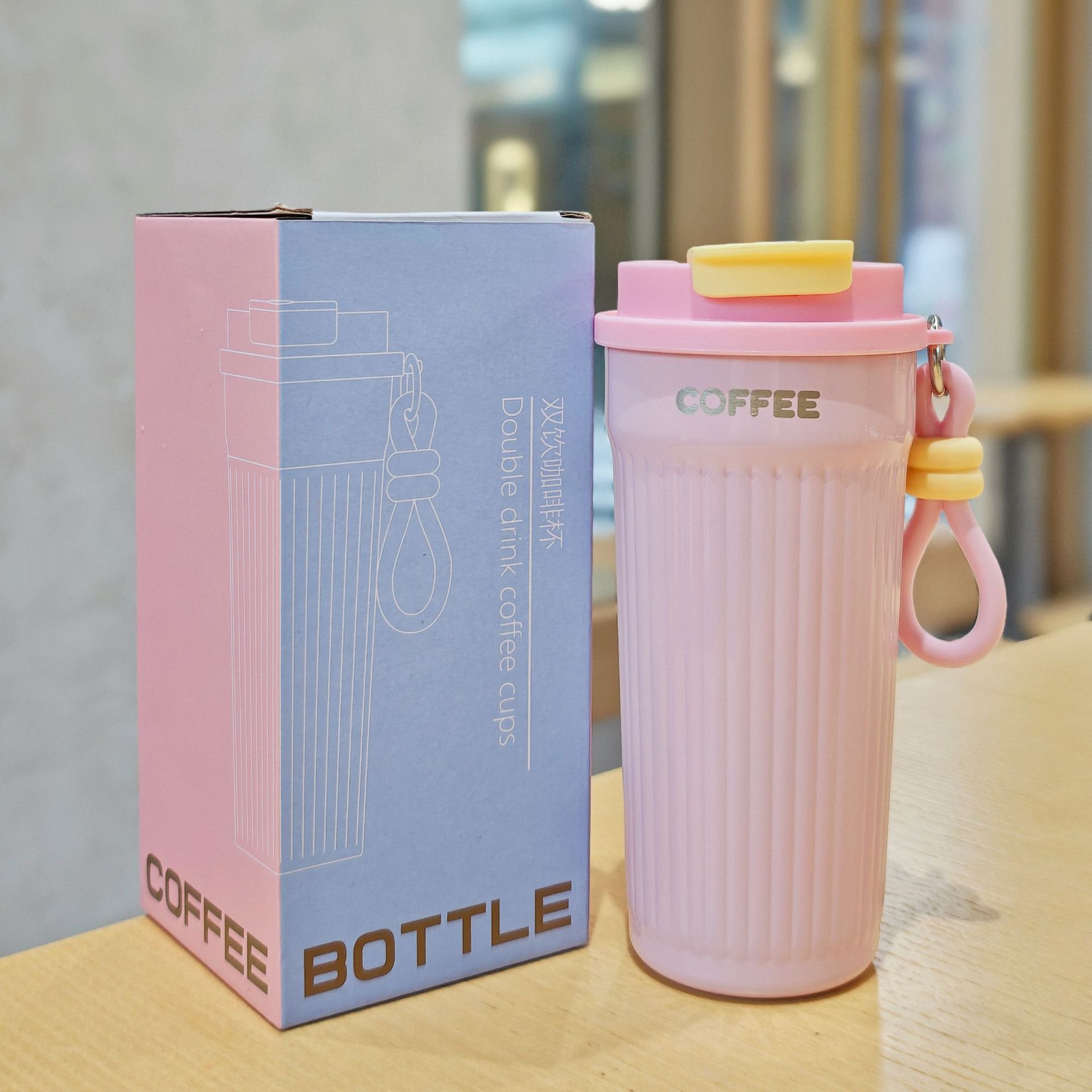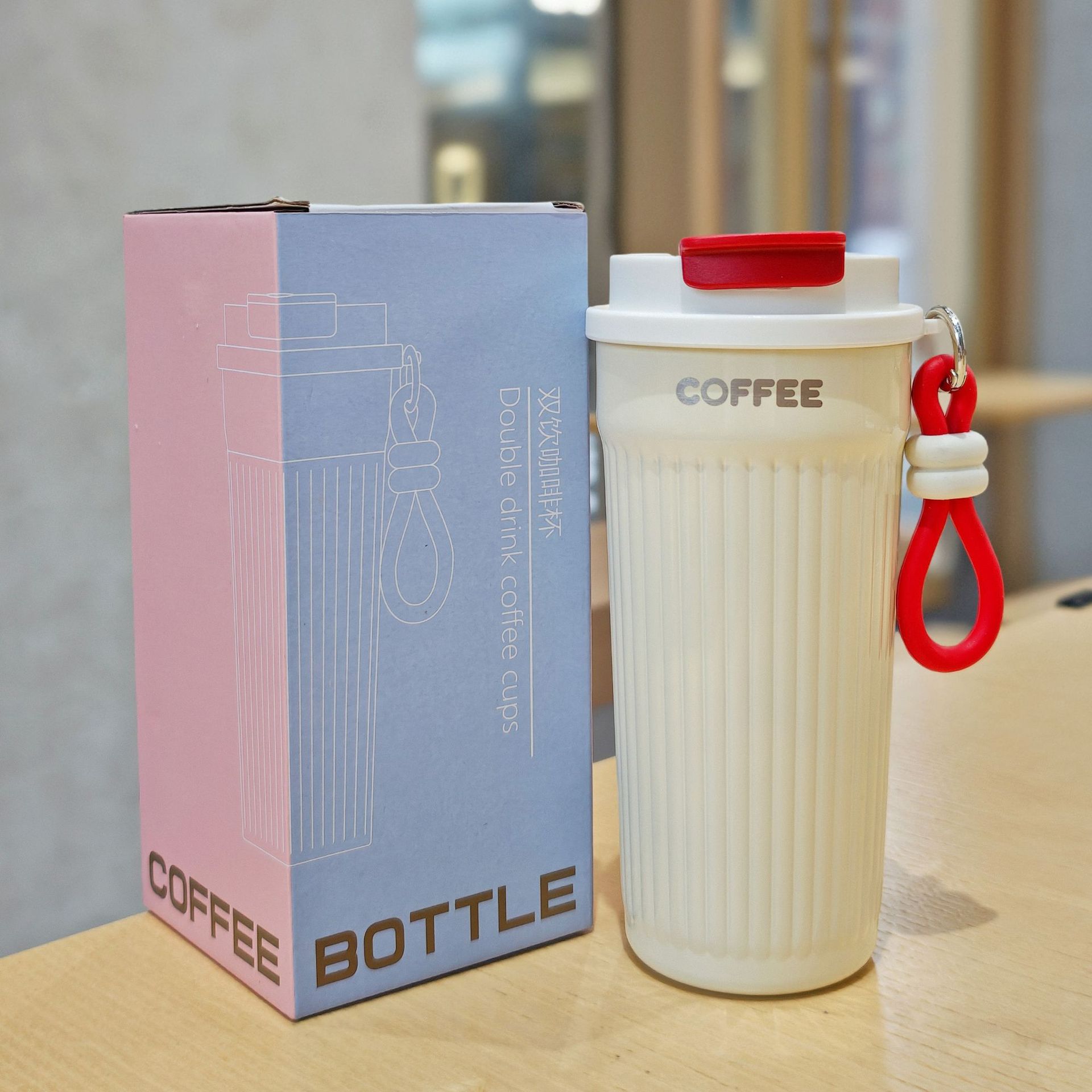 シンプルな縦縞のコーヒーカップ携帯用ステンレス真空コップ美しいダブルドリンクカップカップル携帯用カップ