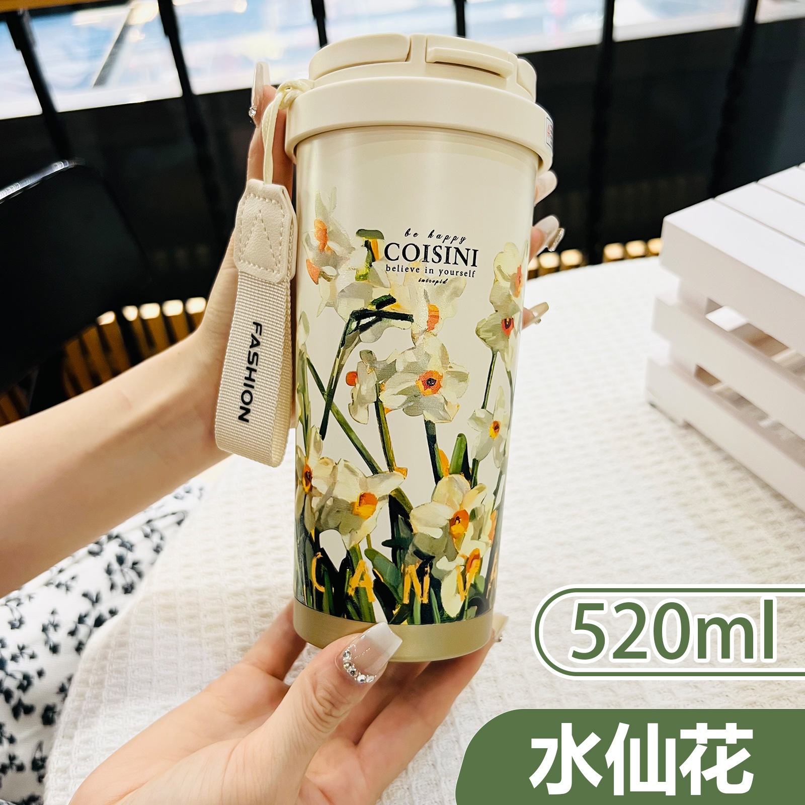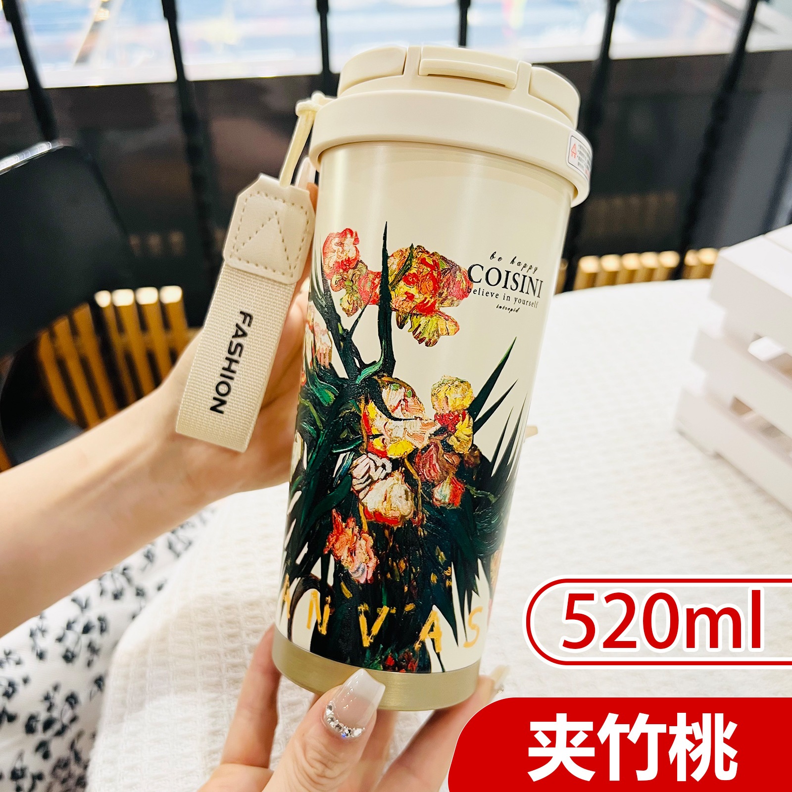 コーヒーカップ女性高容貌値陶磁器内胆316ステンレス保温カップ車載シンプルストローカップ