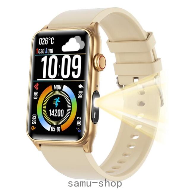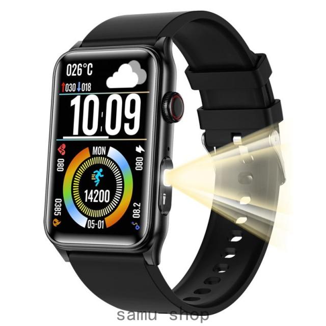スマートウォッチ 日本製センサー 血糖値 血圧測定 血中酸素 24時間高精度心拍数 健康管理 睡眠管理 体温測定 運動記録 着信通知 腕の懐中電灯 IP67防塵防水 長持ちバッテリー iPhone A