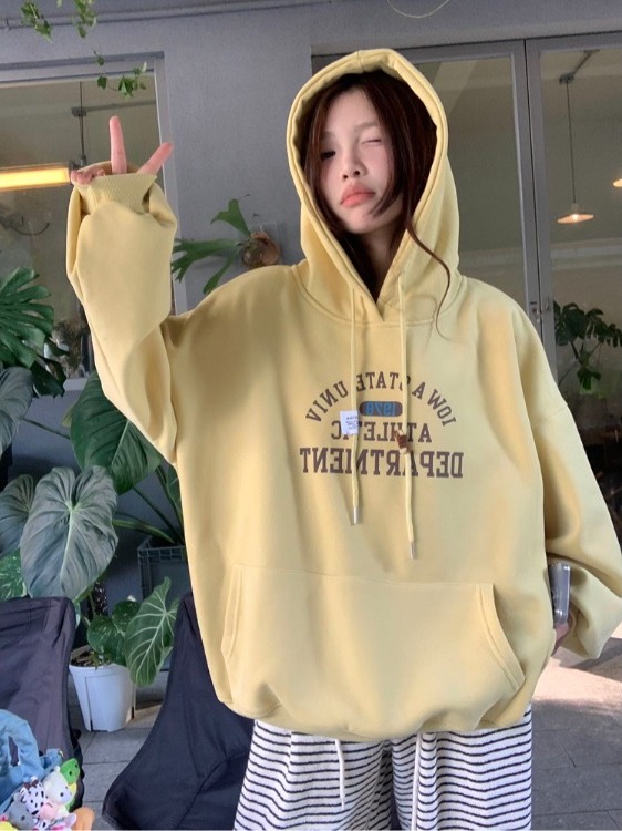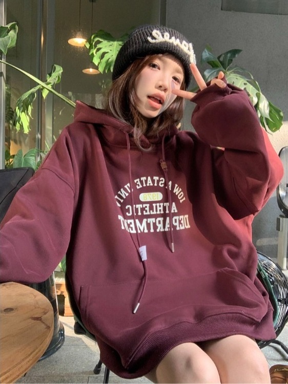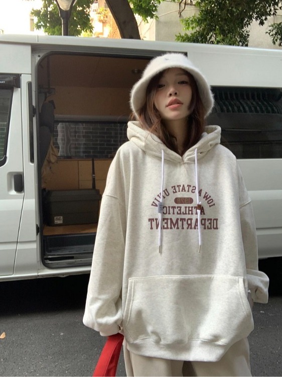 パーカー 【2025秋新作】アメリカンスウェット レタープリント 厚手フリース ルーズ ミディ丈