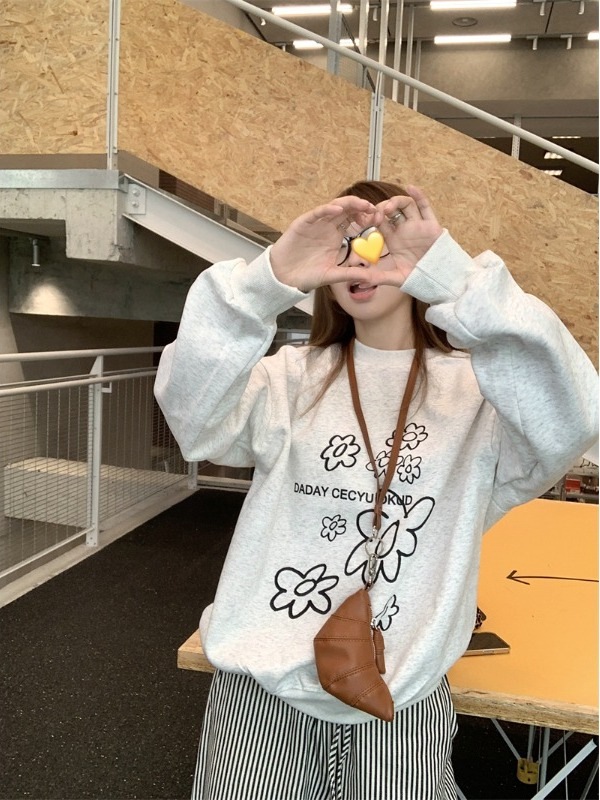パーカー 【2025秋新作】KOREAN風スウェット 花&レタープリント フリース裏地 ゆったり