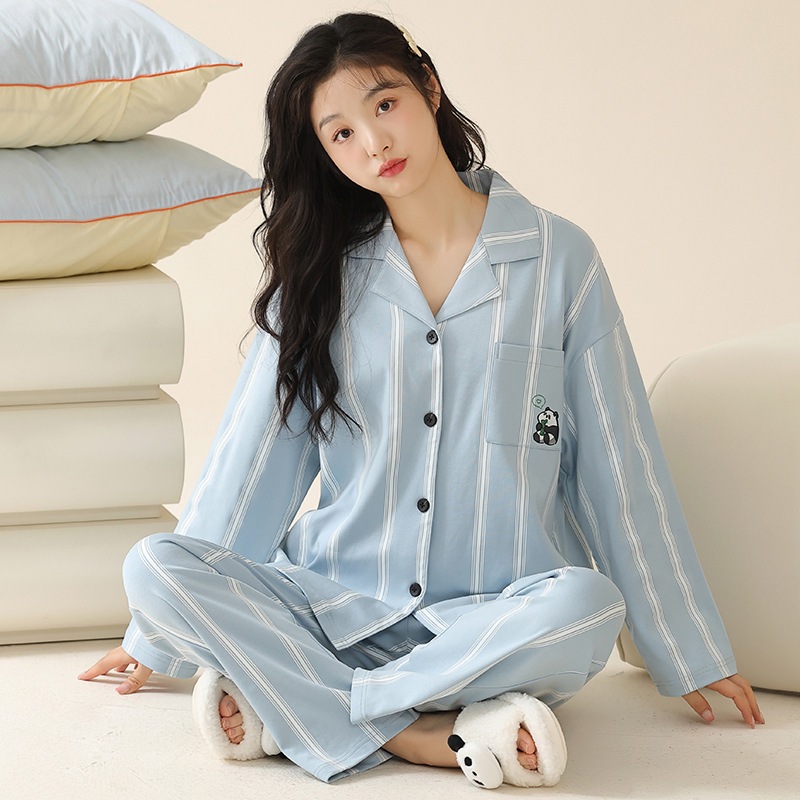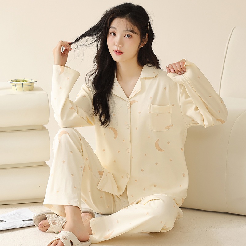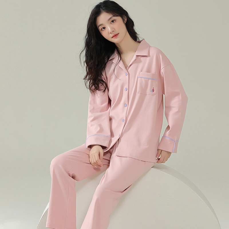純色パジャマ女性綿春秋新型カーディガン春長袖ネット赤風部屋着セット