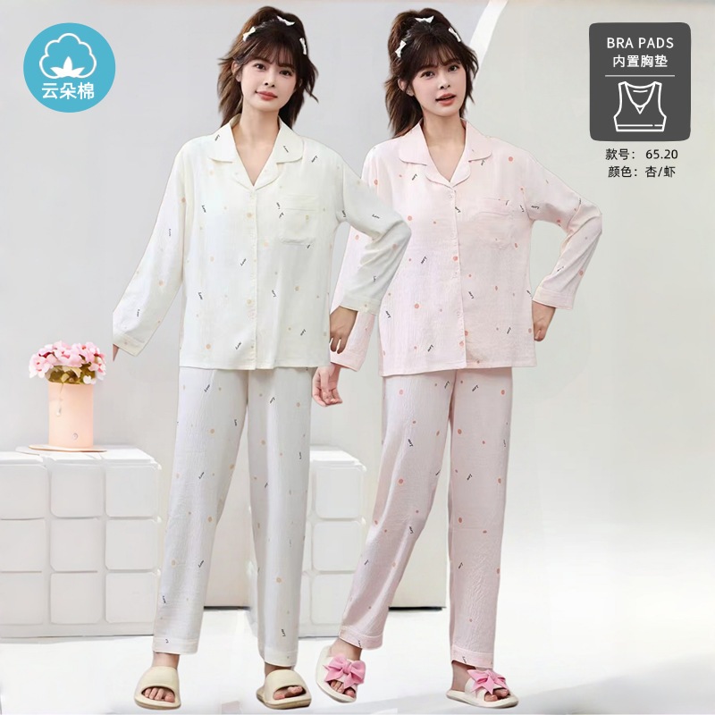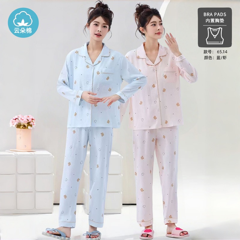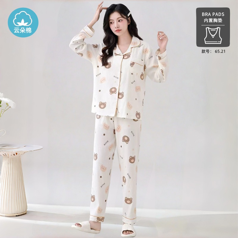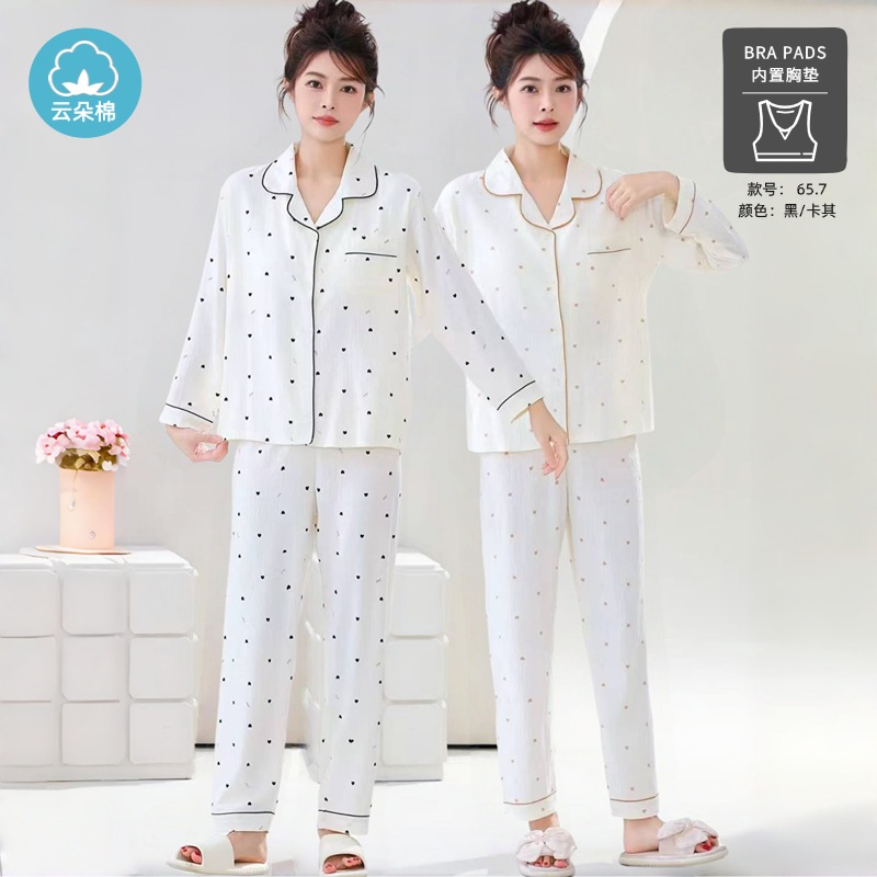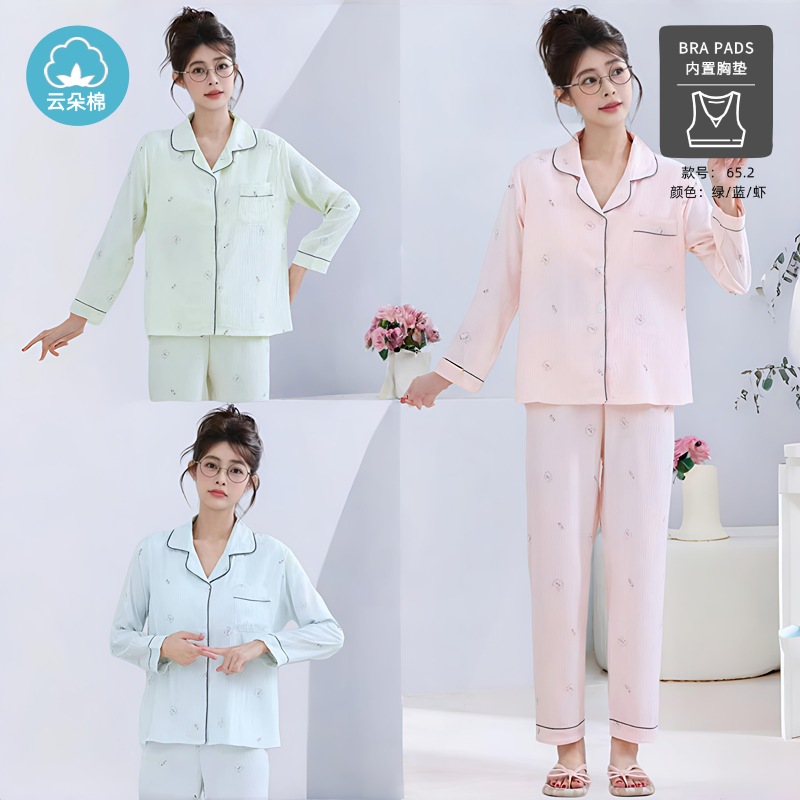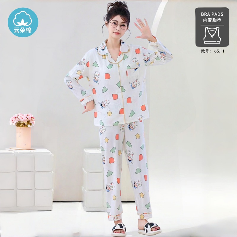 秋の雲綿パジャマ女性用胸当てカーディガン長袖長ズボン甘くて可愛くてゆったりした部屋着