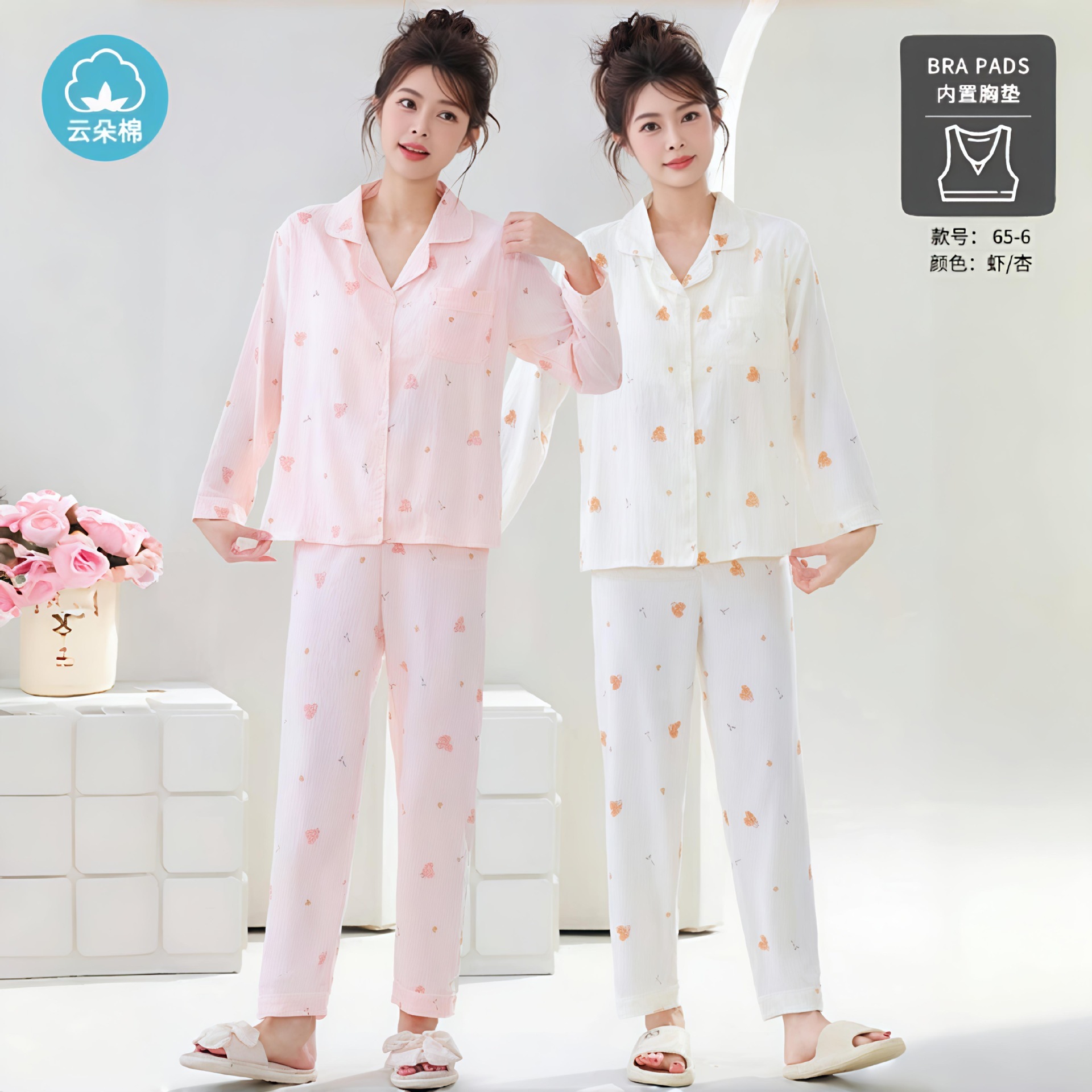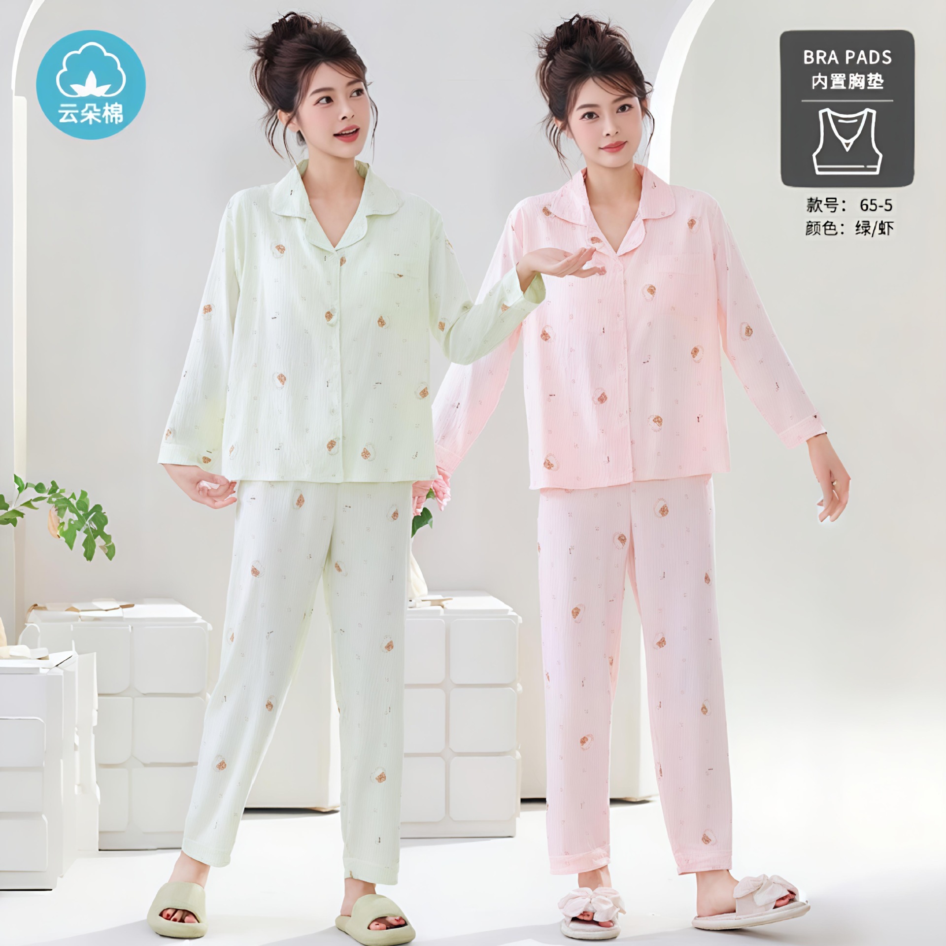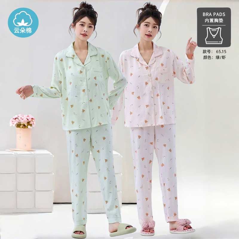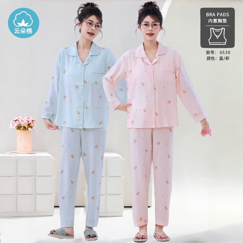 秋の雲綿パジャマ女性用胸当てカーディガン長袖長ズボン甘くて可愛くてゆったりした部屋着