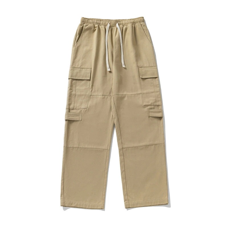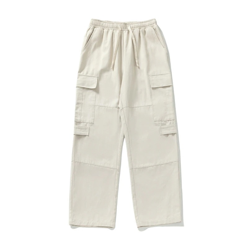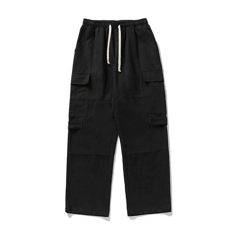 レトロワークスタイルストレートパンツ 新作メンズカジュアルアウトドアパッチワークデザイン 純綿ゆったりフィット トレンドブランドロングパンツ