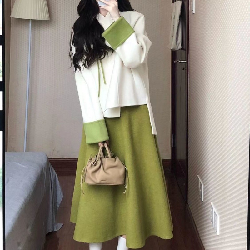 秋用セット 女子学生向け 日本風シャネル風 ボタン留めデザイントップス+森系スカート 2点セット/単品でトレンド感