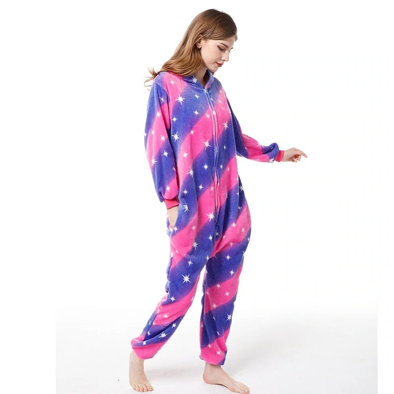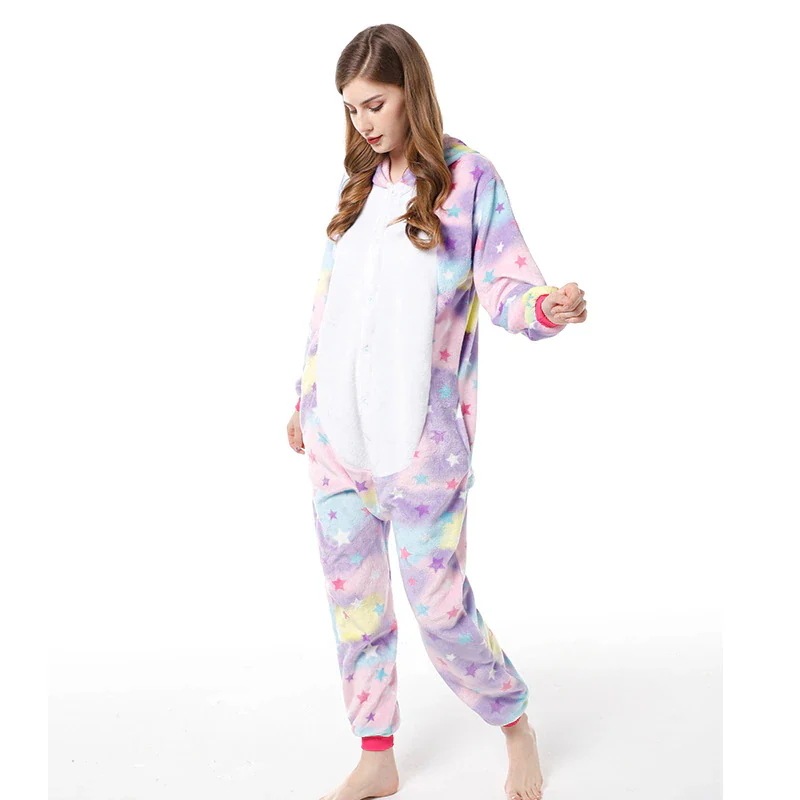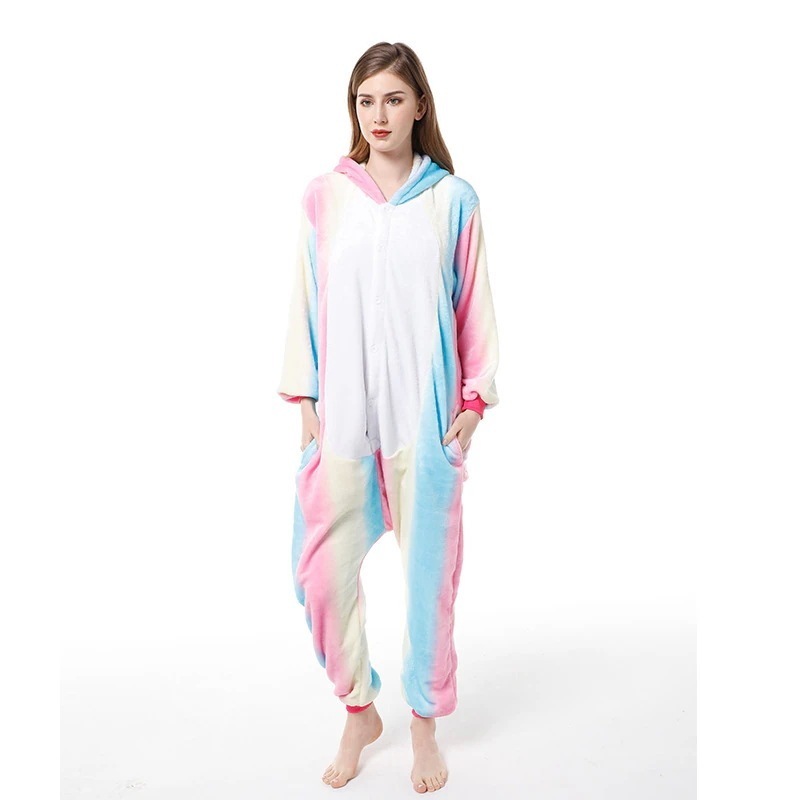 カートゥーンレインボーペガサス アニマルワンピースパジャマ ロングスリーブ設計 ホームウェア 鮮やかなレインボーカラーと可愛い天马デザインが特徴 柔らかい素材で肌に優しく室内のくつろぎ時間にピッタリ