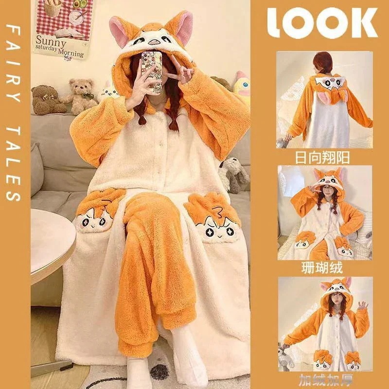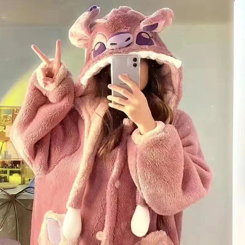 冬 おかしくて可愛いデザイン ワンピースタイプ カップル用リビングローブ 睡袍 男女兼用 カートゥーン柄が特徴 ホームウェア 保温 柔らかい肌触り 室内のくつろぎ時間やカップルでのワンシーンにピッタリ