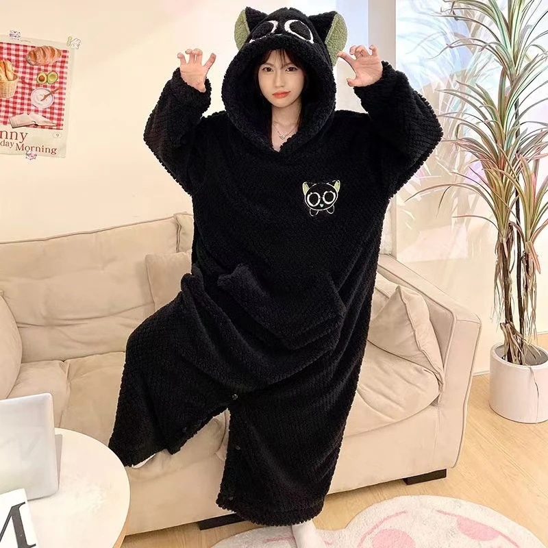 着ぐるみパジャマ ルームウェア パジャマ ワンピースコーラルフリースパジャマ 女性用 秋冬用 裏地付き厚手 キャラクター保温ガウン 冬用ルームウェア