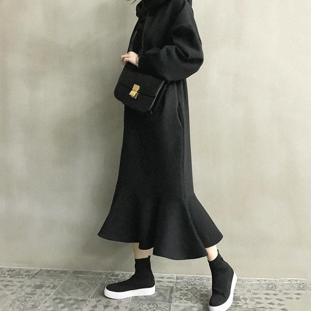 2025年秋冬新作 韓国風 気品あるゆったりフーディワンピース 膝丈フィッシュテールワンピース ロング丈・長袖