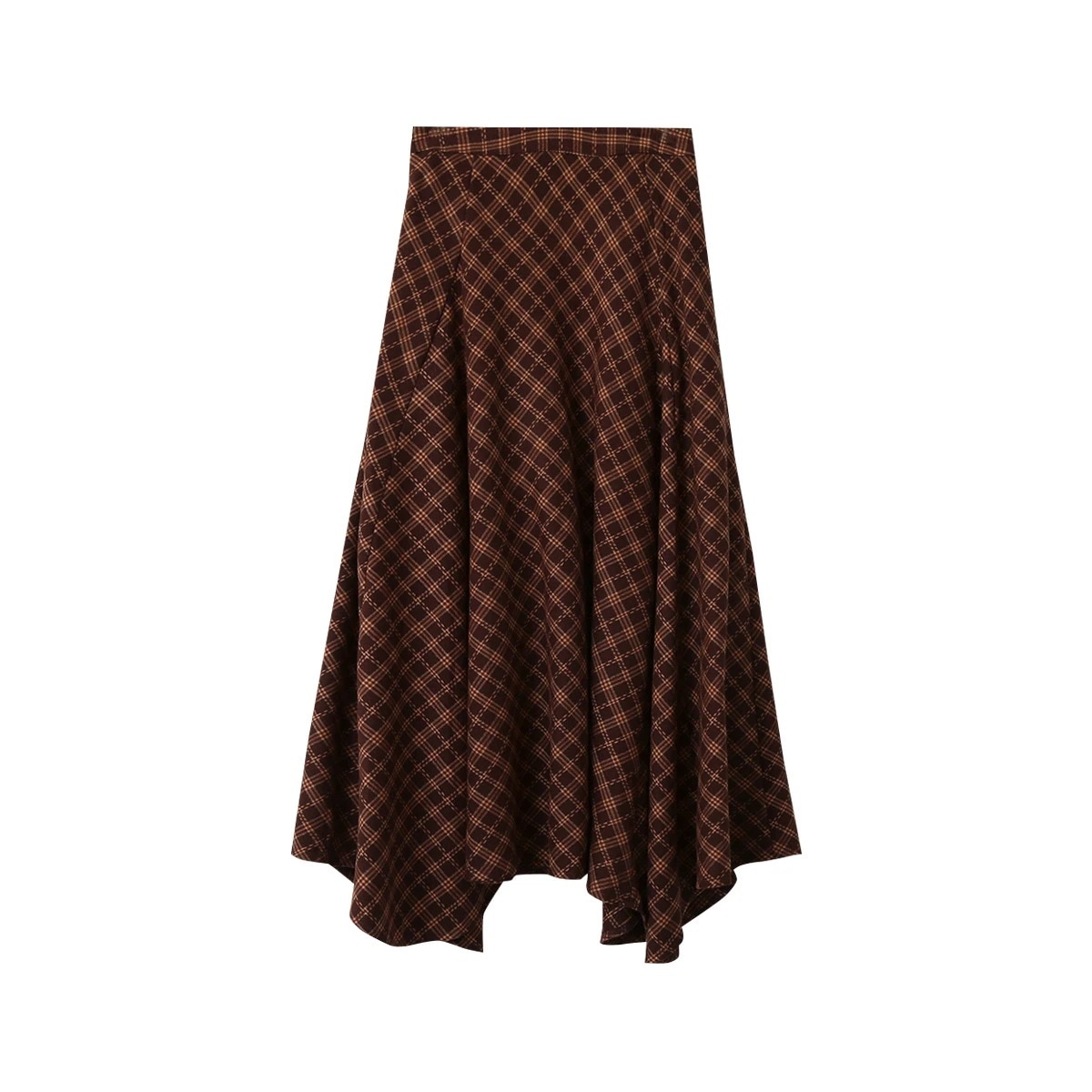【欧凡(オウファン)】レトロチェックブラッシュドソフトハイウエストハーフスカーフ レディース 2025 秋冬新作 スリムロングスカーフ 3134