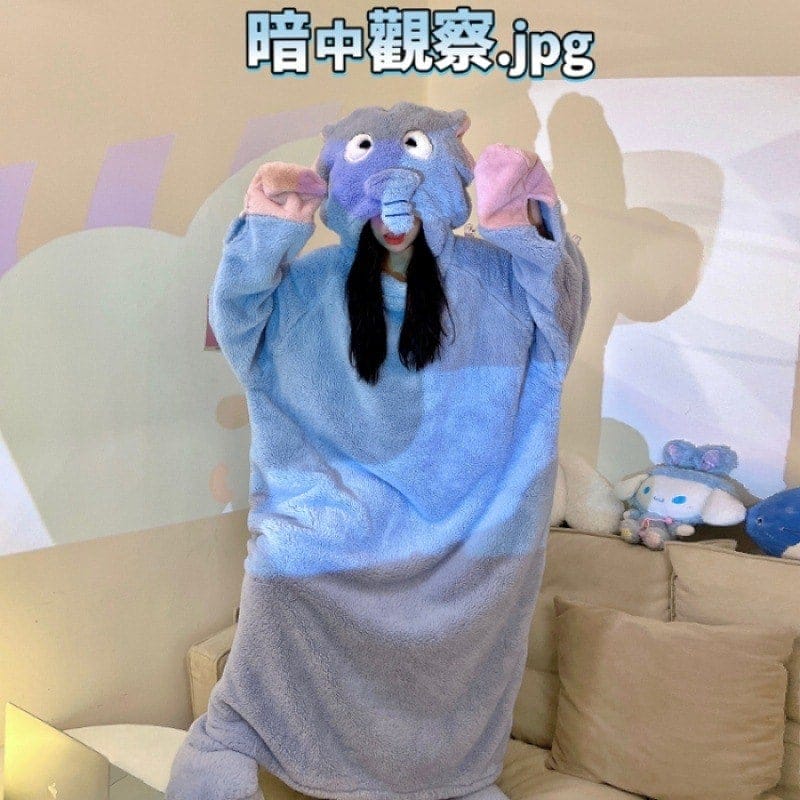 本パジャマレディース着ぐるみパジャマキャラクター可愛い珊瑚絨毯パジャマ連体女パーティーで象帽子をかぶって寝るセットアップ