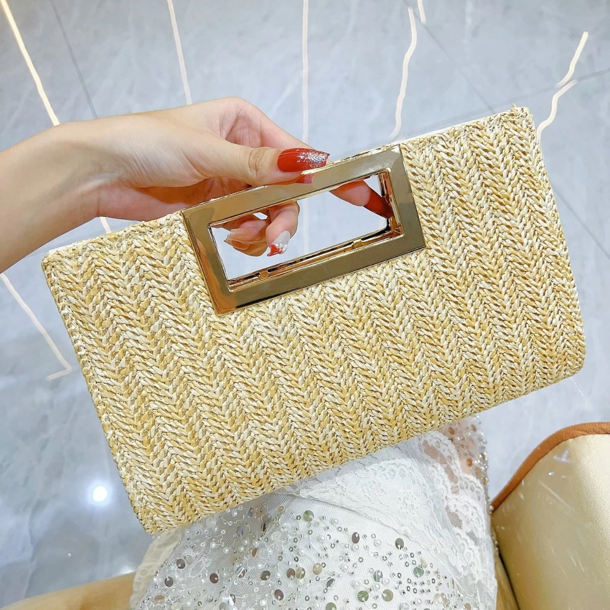 新モデル 編み込み女性用バッグ ハンドバッグ ストロー素材 ファッションシンプルデザイン クロスバッグ 大容量 日常カジュアルに適し 通気性良好 らしい爽やか感 多用途使用可