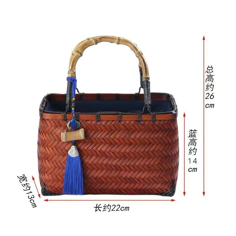 竹編みバッグ収納バッグレトロなハンドバッグ純粋なり