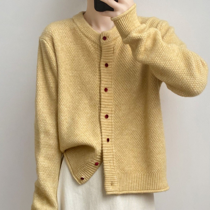 セーターカーディガン女性レトロラウンドネックニットコートトップス