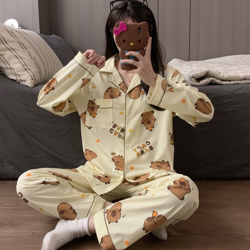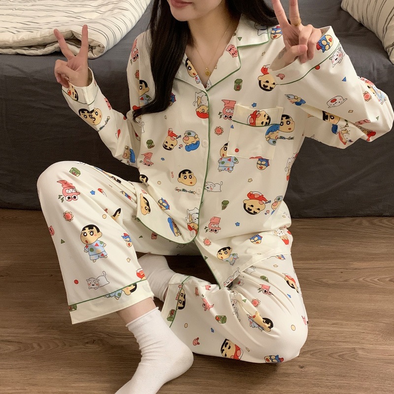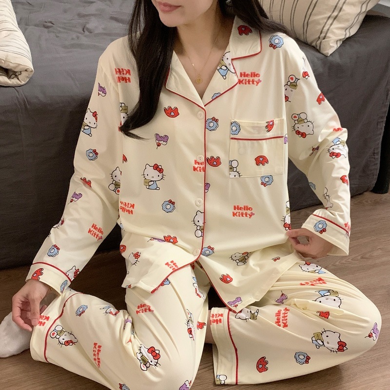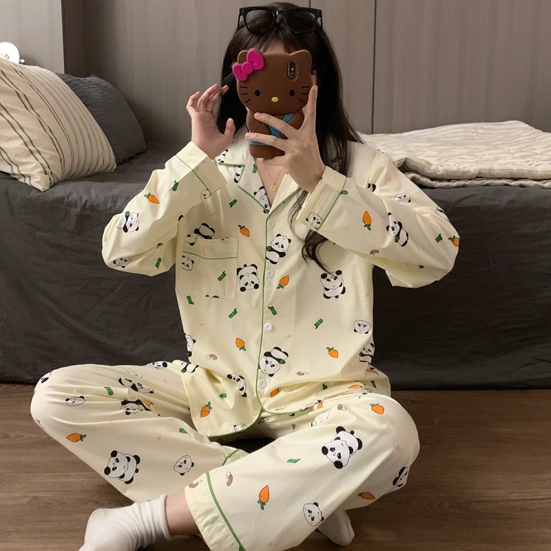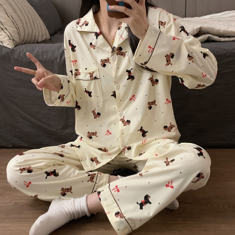 新作 春秋 コットン パジャマ レディース かわいい 漫画 襟 カーディガン ゆったりフィット 薄手 着る ホームウェア 韓国ファッション