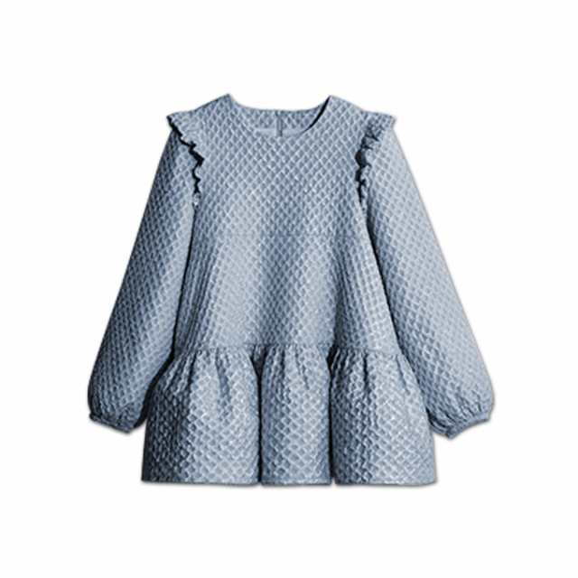 カレイKarei 裏起毛ジャガードトップス 立体感ダイヤ柄 肩フリル ふんわり 体型カバー ゆったり 大人可愛い 30代 40代 50代