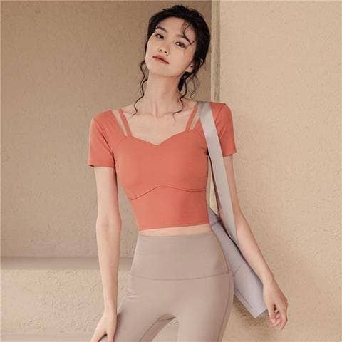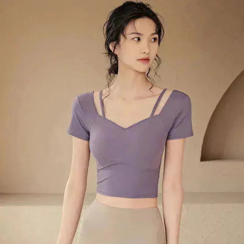 お家ヨガウェア 2025春夏 新作 半袖 おしゃれヨガウェア カップ付き 百掛け フィットネス トップス