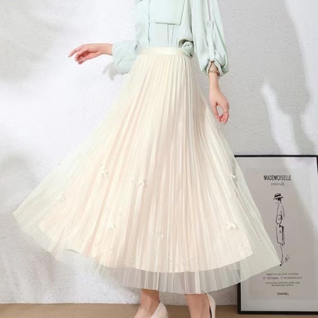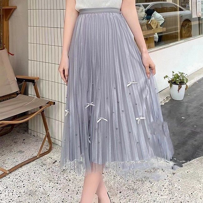 【送料無料】スカート プリーツスカート レディース フレアスカート ロング 春夏 リボン シンプル 体型カバー ウエストゴム きれいめ