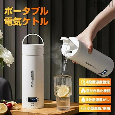 水筒 ポータブル 電気ケトル 電気水筒 持ち運び 電気ポット 魔法瓶ポット 500ml 小型 ミニ 電気ボトル ボトル 保温機能付き ポータブルケトル 4段階温度設定 漏れ防止 自動電源OFF スポー