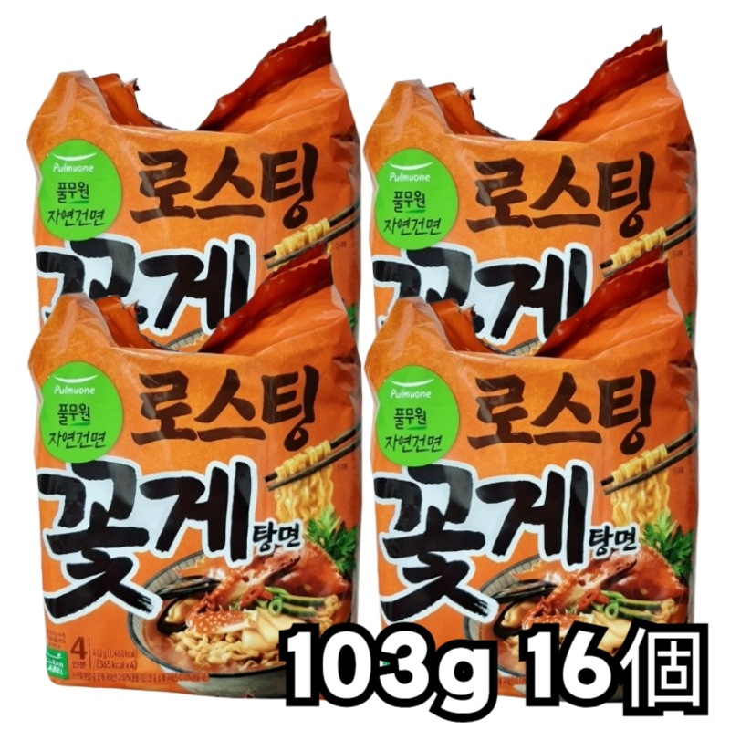 プルムウォン自然乾麺 ロースティング カニ鍋ラーメン 103g × 16袋セット 韓国ラーメン ノンフライ麺 海鮮スープ 即席麺 韓国食品