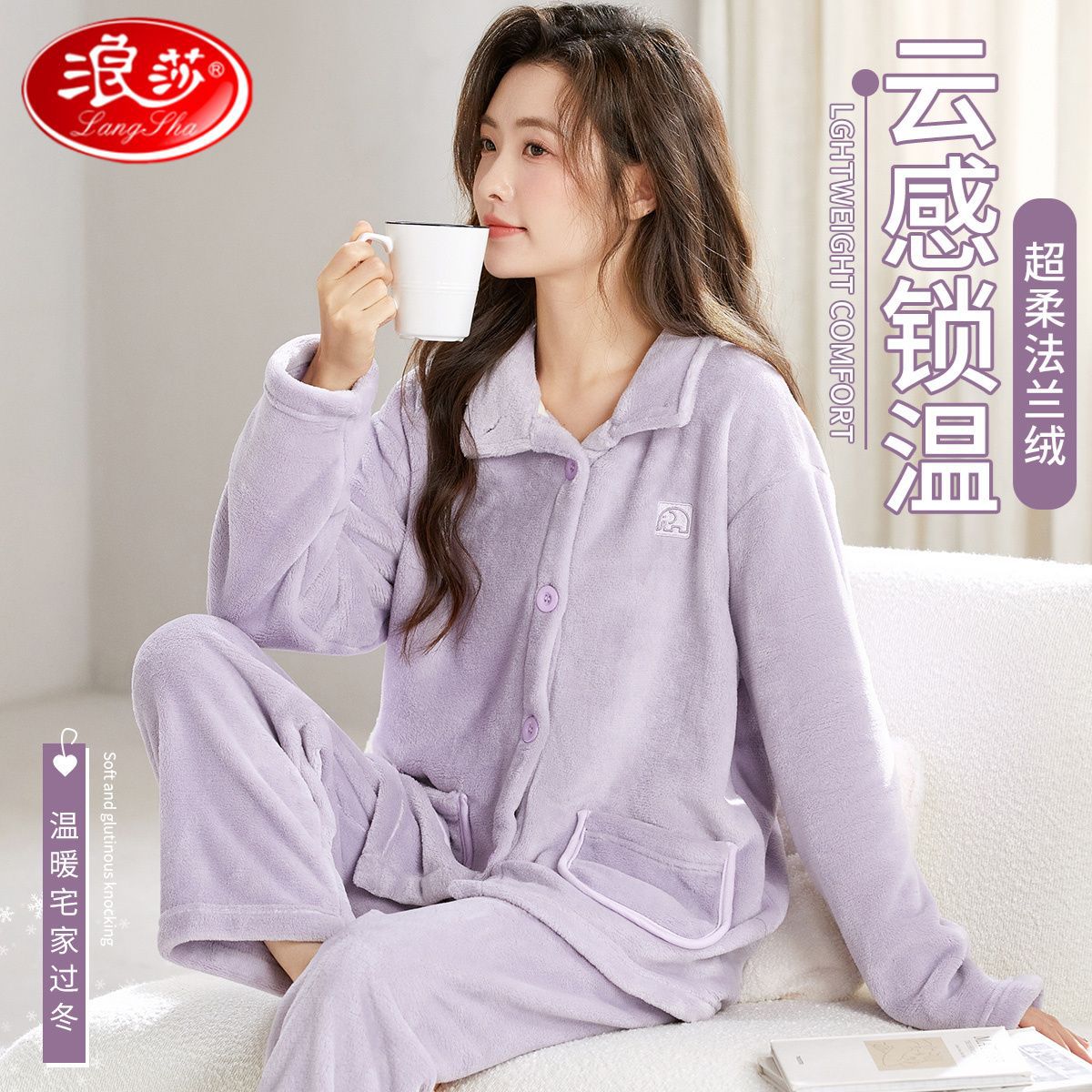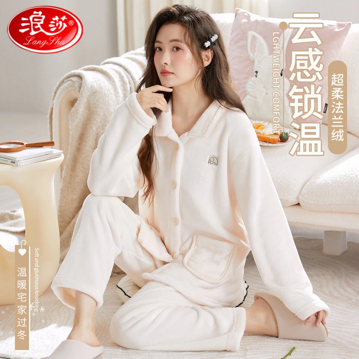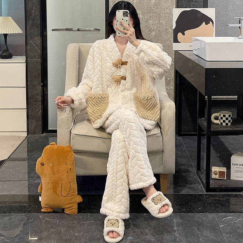 コーラルフリースパジャマ女性用秋冬2025新作厚手保温アウターとしても着用可能クマ柄春用大サイズホームウェアセット