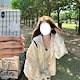 小花柄 アプリコット色 フード付きスウェット 秋 韓国風 カジュアル ジップアップ ゆったり カーディガンアウター