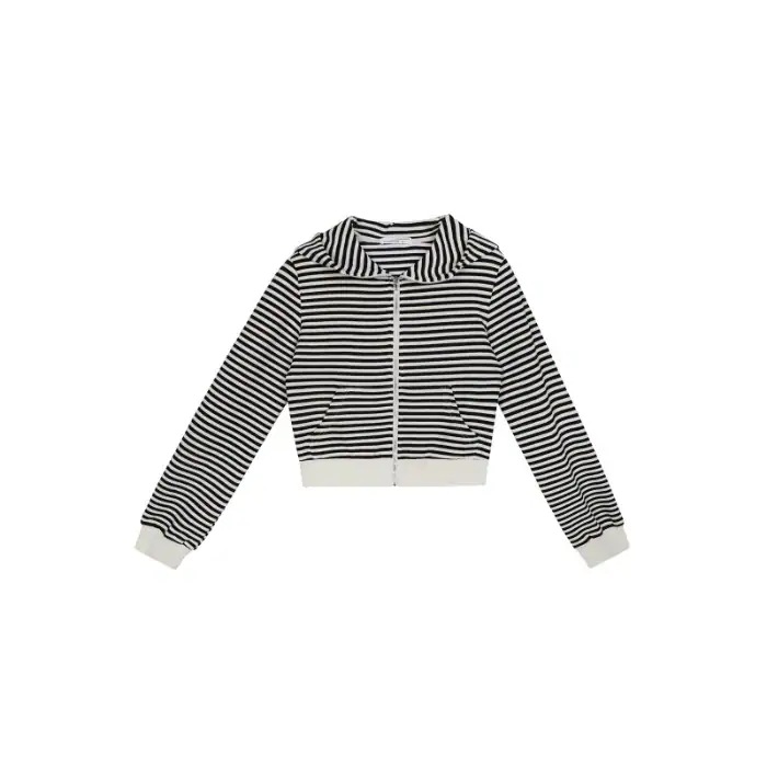 ストライプ アウター レディース 春夏新作 韓国風 ショート丈 フード付き ジッパー付き スウェットカーディガン