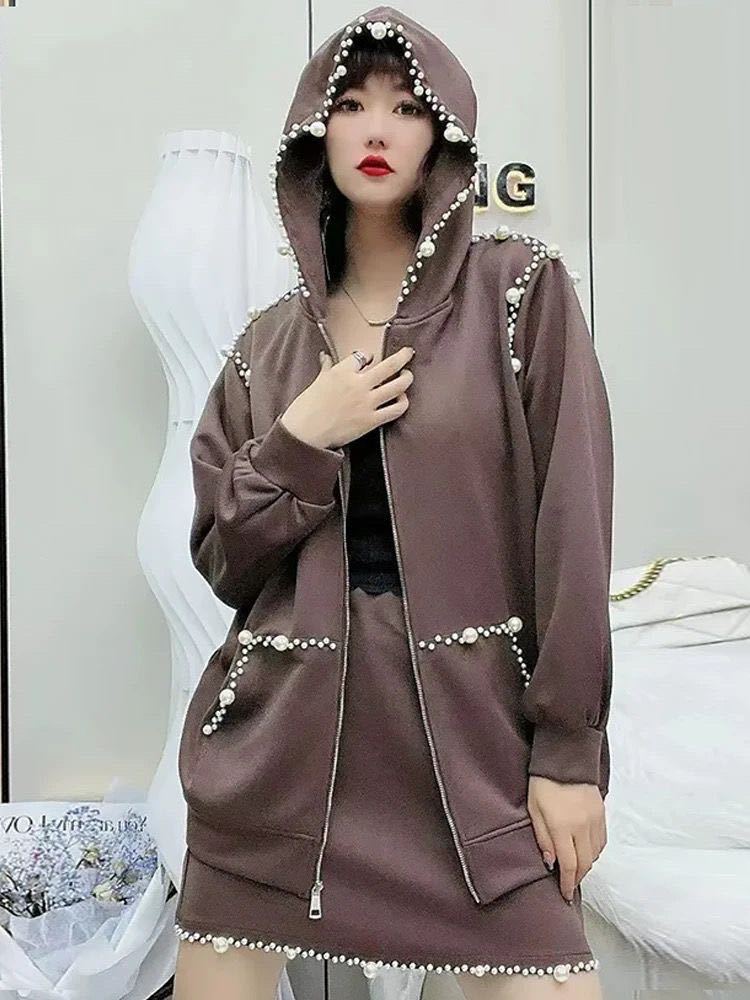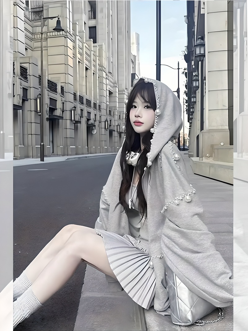 秋冬新作 流行 グレー 長袖パールフーディ アウター レディース ゆったり カジュアル カーディガン トップス 合わせやすい