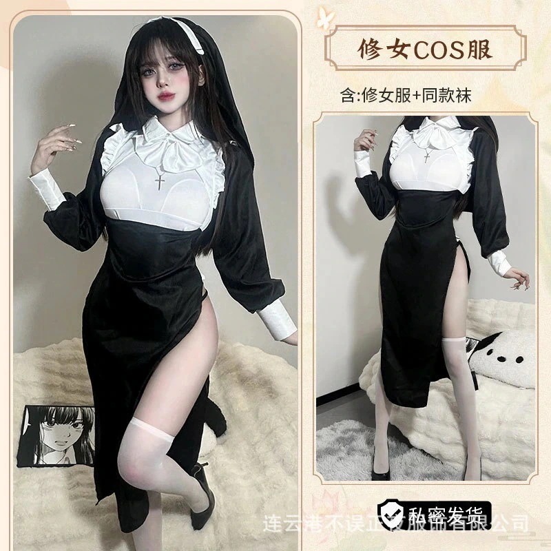 【 3日で出荷 】セクシーCOS修道女制服 タイトハイスプリット誘惑脱がないスーツエロティックランジェリー ハロウィン コスプレ コスプレ セクシー コスプレ ハロウィン ハロウィンコスチューム ハロ