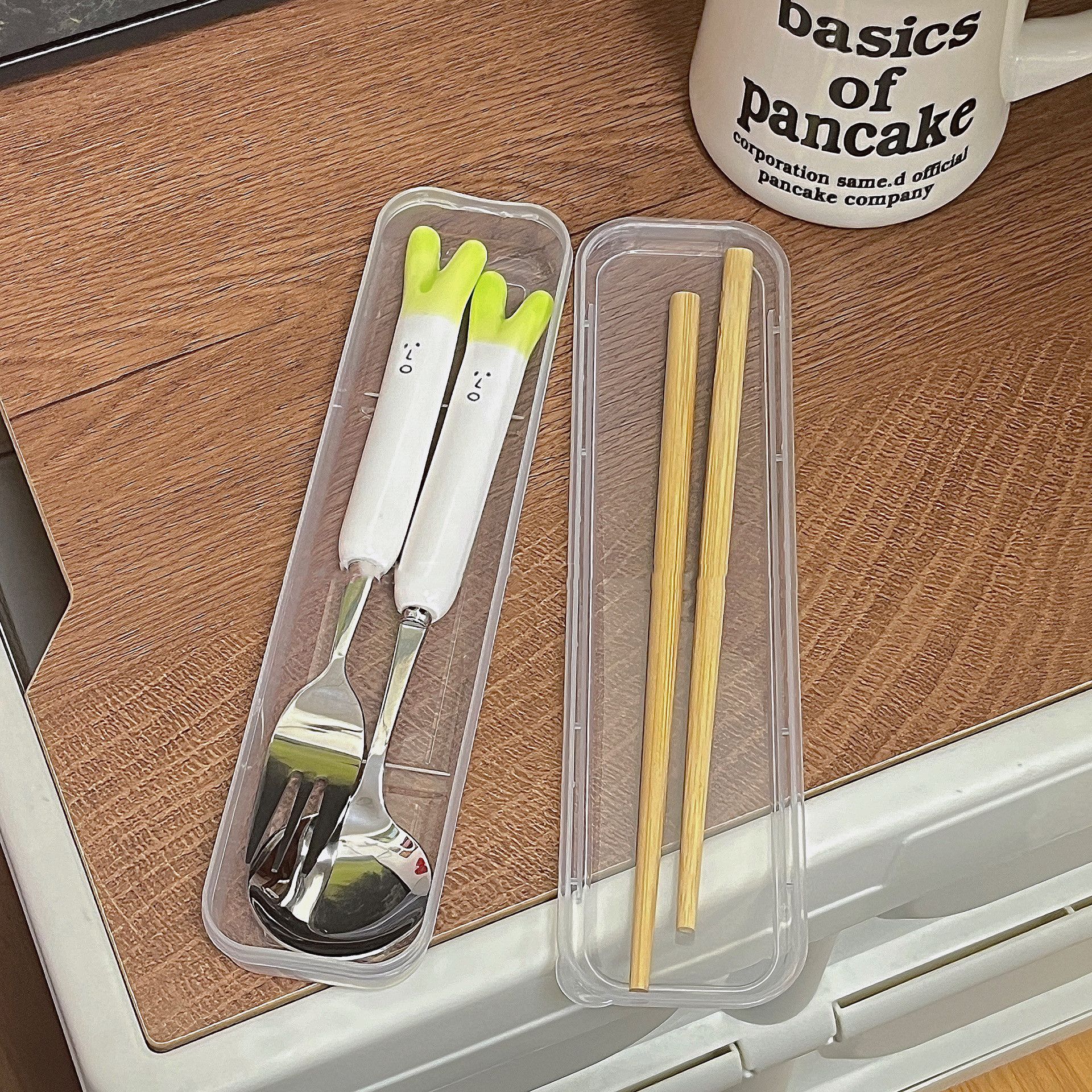 かわいいネギスプーン フォーク 木製箸 セラミックスプーン 高感度ins風カートゥーンデザイン3点セット食器
