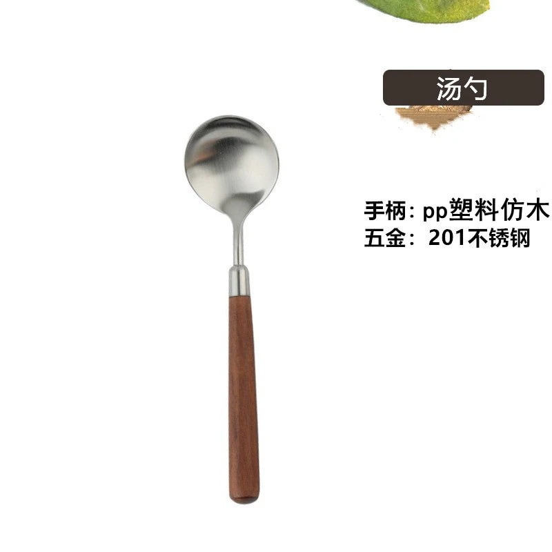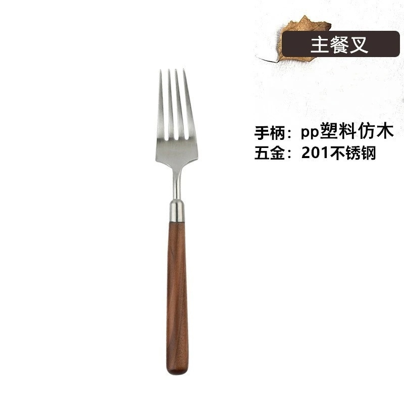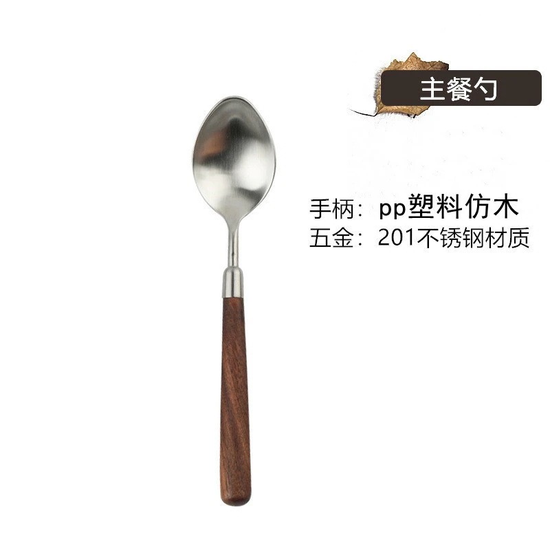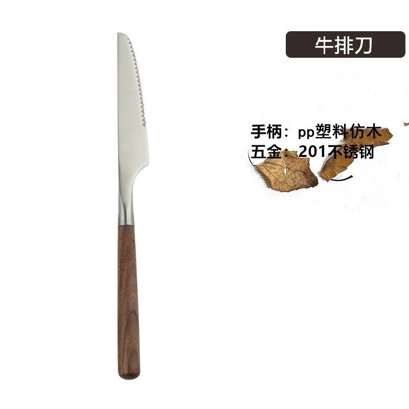 ステンレス木製ハンドル カトラリー西洋ナイフウォールナット調スプーンスープ・食事用ステーキフォークセット
