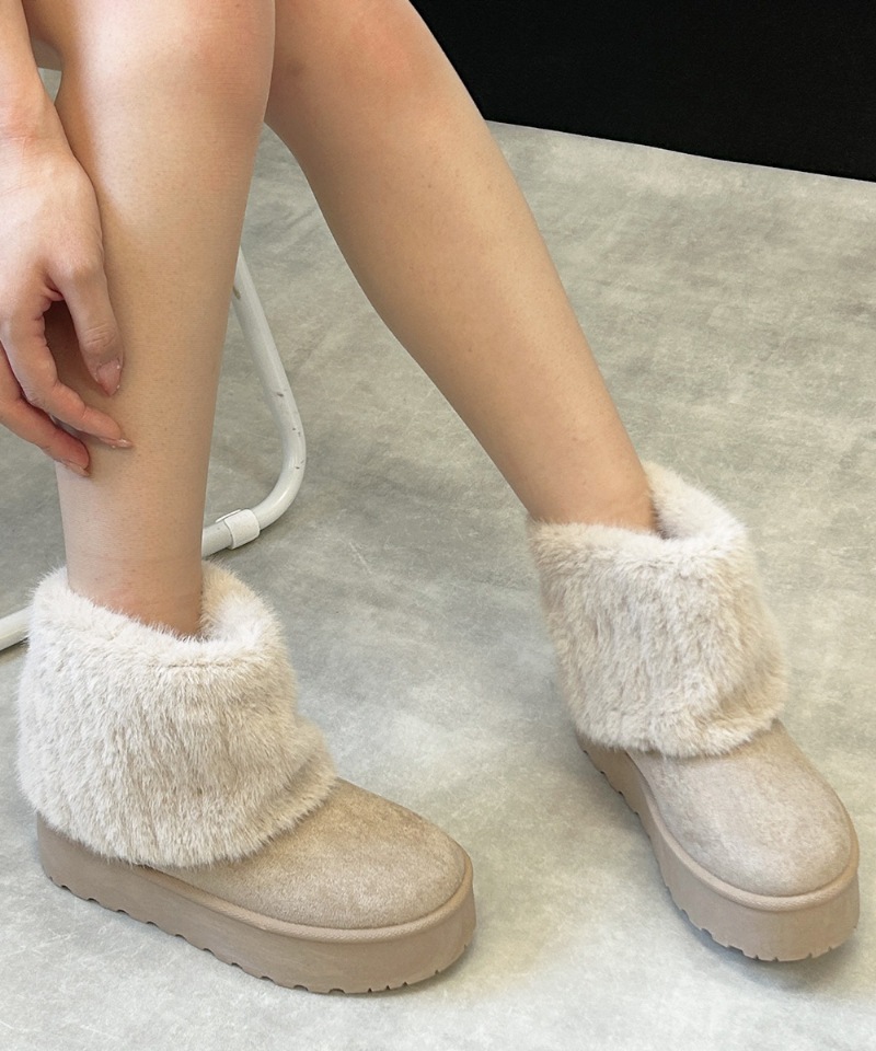 厚底 ファーカバー ショート丈 ムートンブーツ