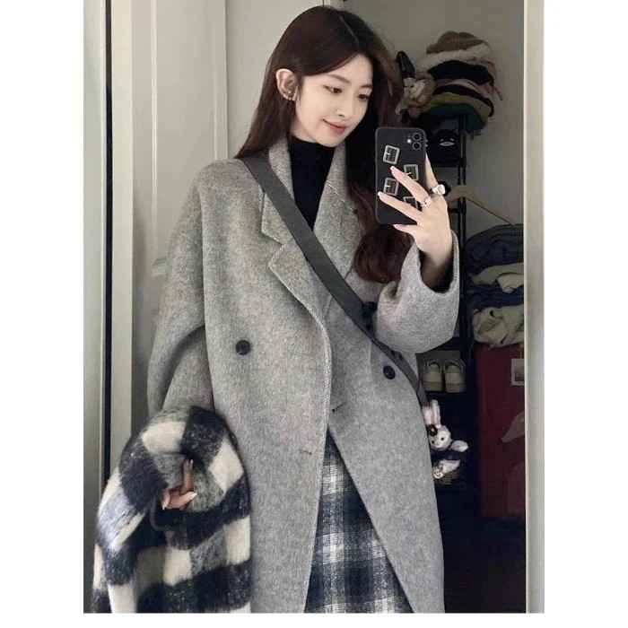大人っぽチェスターコート ロングツイードコートのツイードジャケット冬アウター 韓国ファッション裏起毛 アウター アウターレディース 防寒 保温